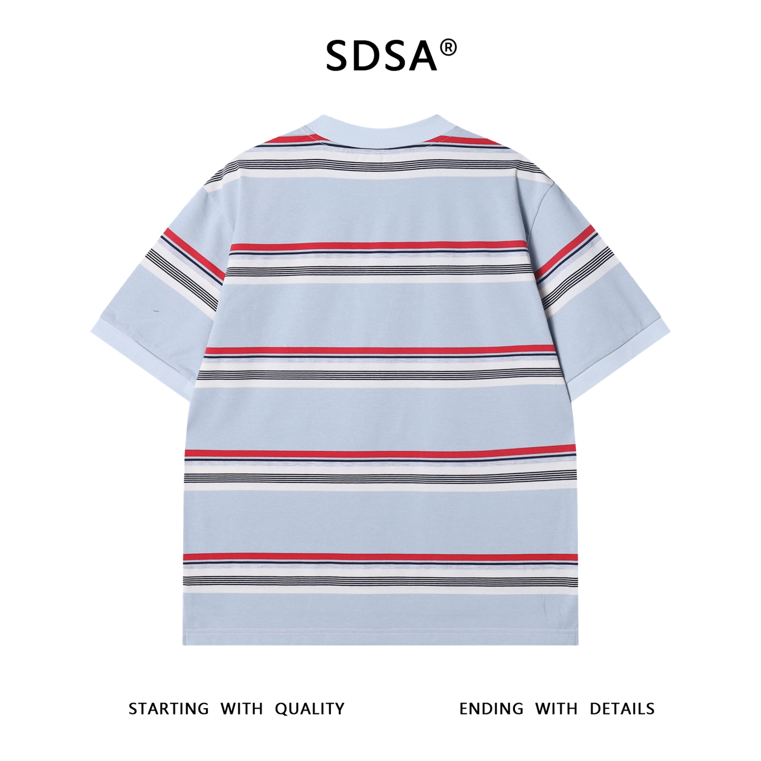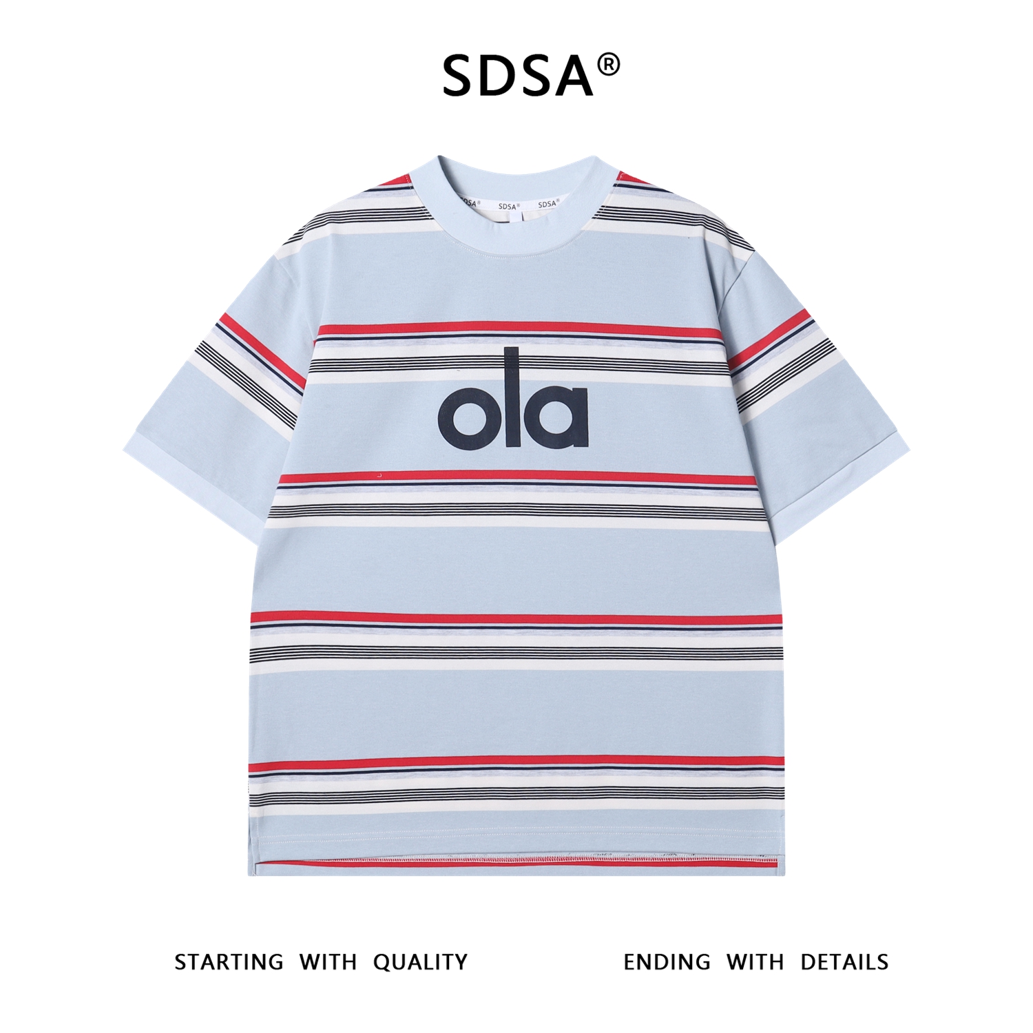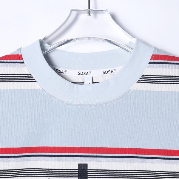 T3530夏季高级感新款男士简约条纹印花字母短袖T恤慵懒风百搭圆领上衣
