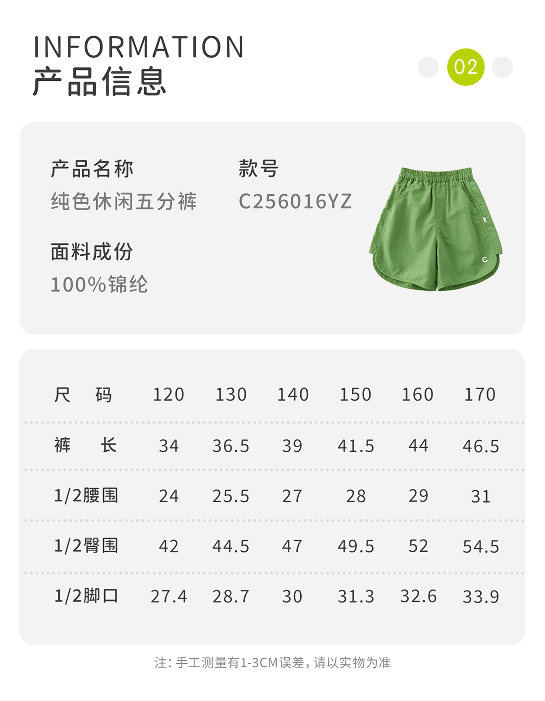 cicochild 2025春夏第一波新品纯色休闲五分裤805C256016YZ