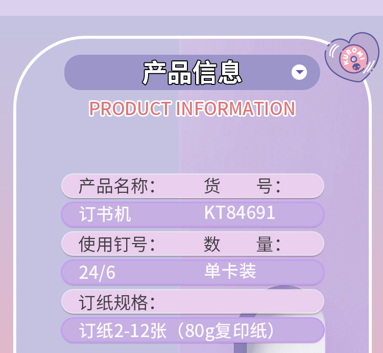 广博三丽鸥系列开学季文具正版授权订书机小号送480枚订书钉KT84691 商品图2