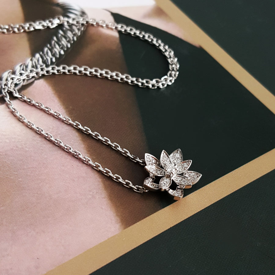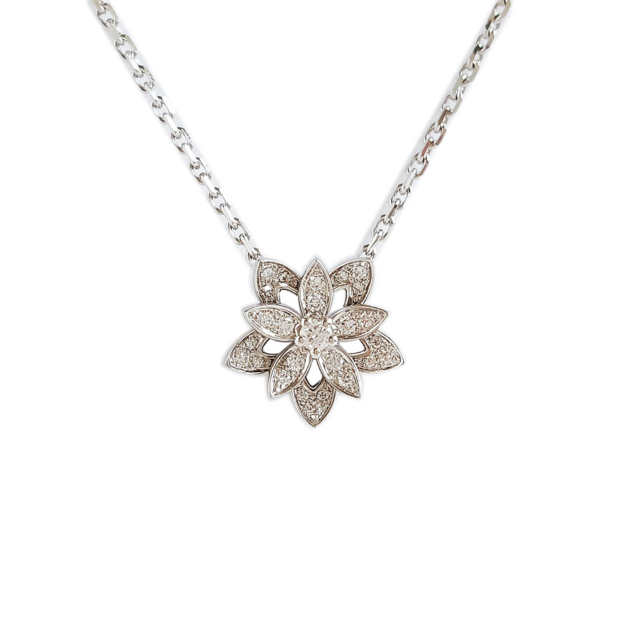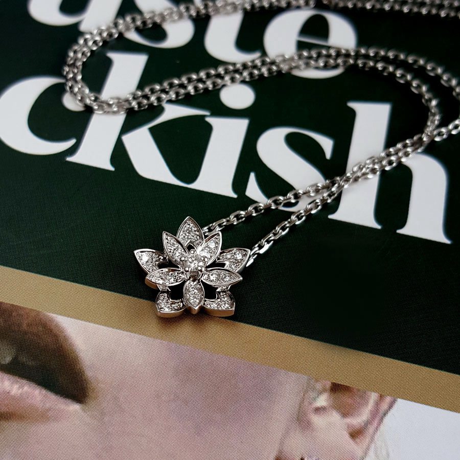 款式 | 迷你18K白金满钻镂空Lotus莲花项链 |