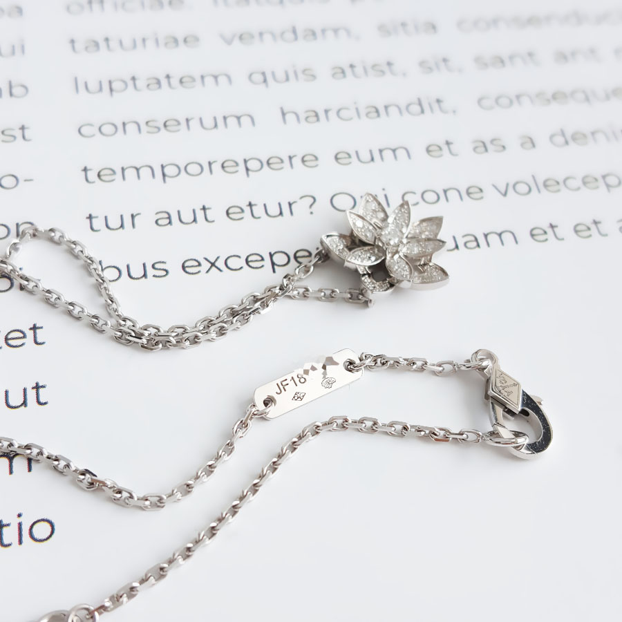 【95新】VCA梵克雅宝Lotus系列VCARP0ZW00 迷你18K白金满钻镂空Lotus莲花项链女士现售价:22000!120825NJS10