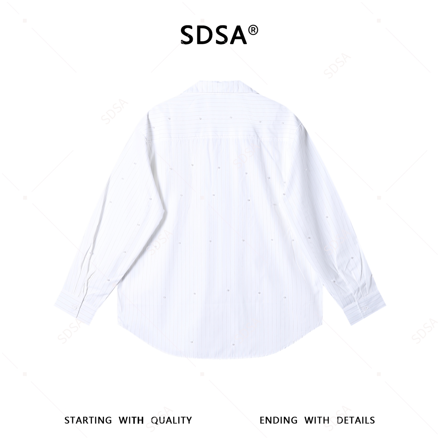 SDSA男装2026新款高贵轻奢简约细条纹长袖衬衫立体珠子装饰百搭