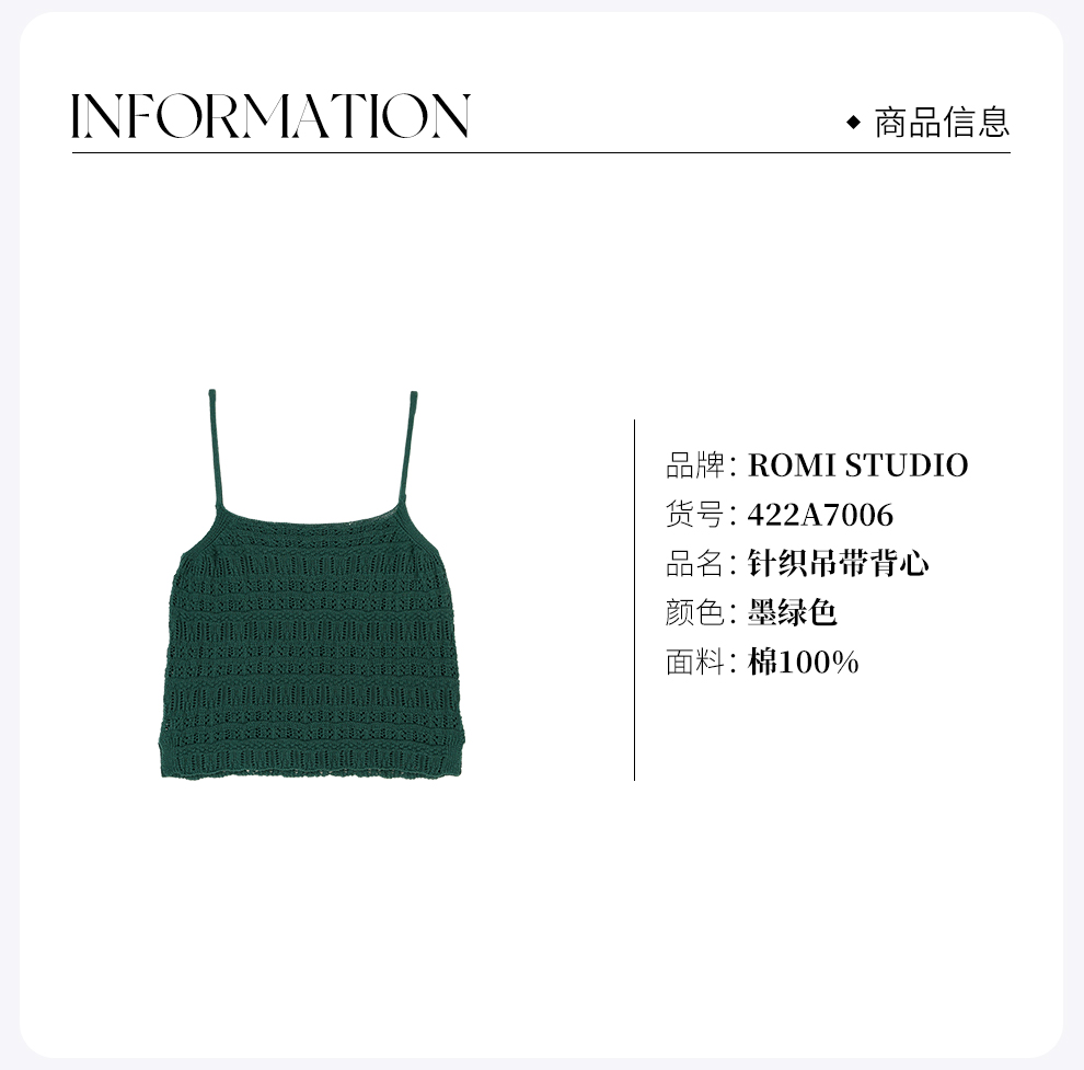 ROMI STUDIO “率性而为” 100%高捻棉7针挑孔针织吊带背心422A7006