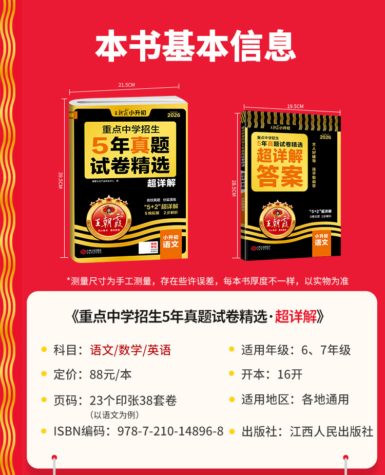 2026新王朝霞小升初五年真题试卷超详解语数英五六年级试卷通用招生考试真题