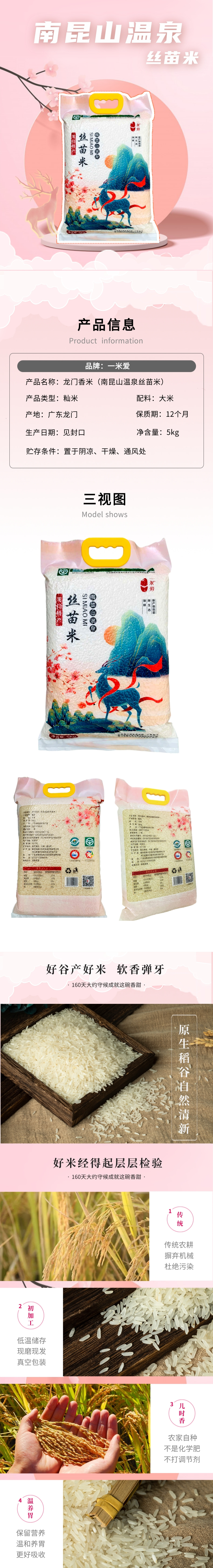 【顺丰包邮】广东惠州龙门一米爱南昆山温泉丝苗米5kg/袋