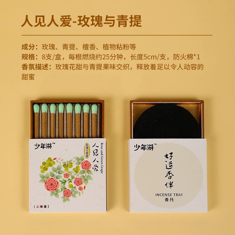 喜熏少年游系列火柴香薰 长度5cm*8支/盒*防火棉*1