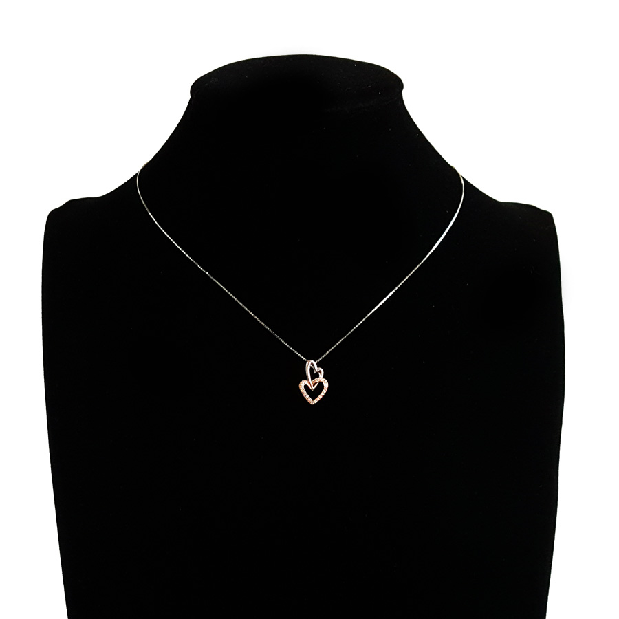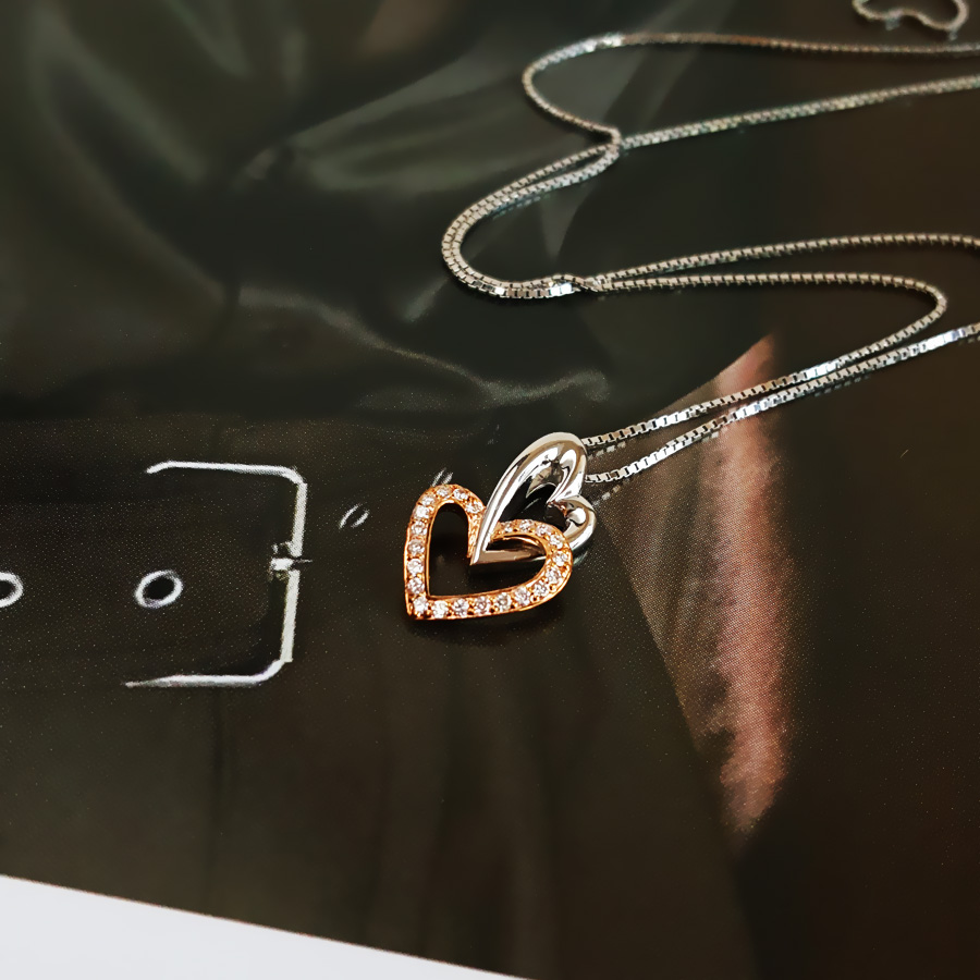 款式 | AU750双色金时尚设计款双爱心造型钻石吊坠项链 |