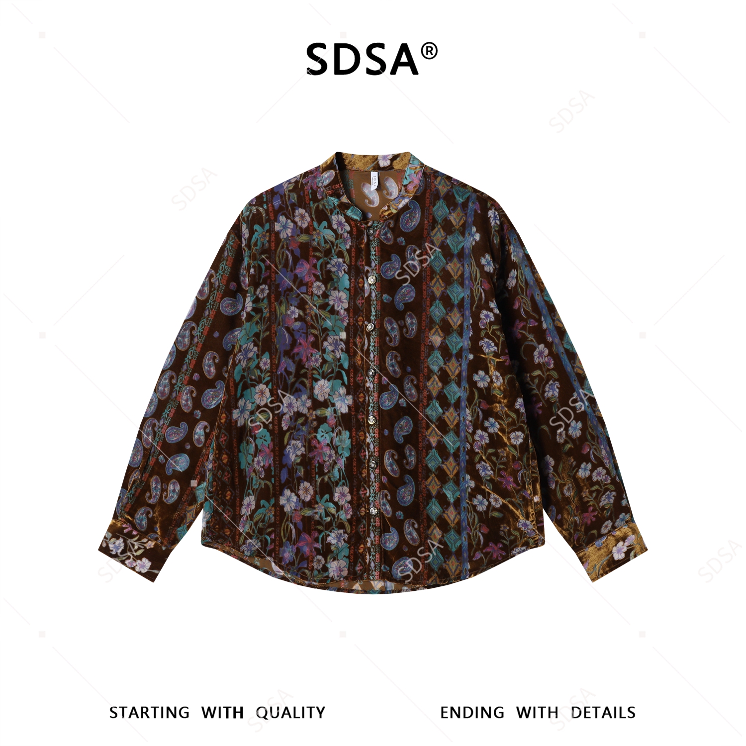 26CS06SDSA男士秋冬新款痞帅男装潮牌植绒植绒花卉立领长袖衬衫百搭休闲