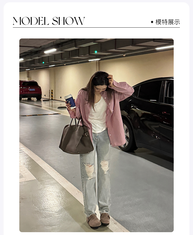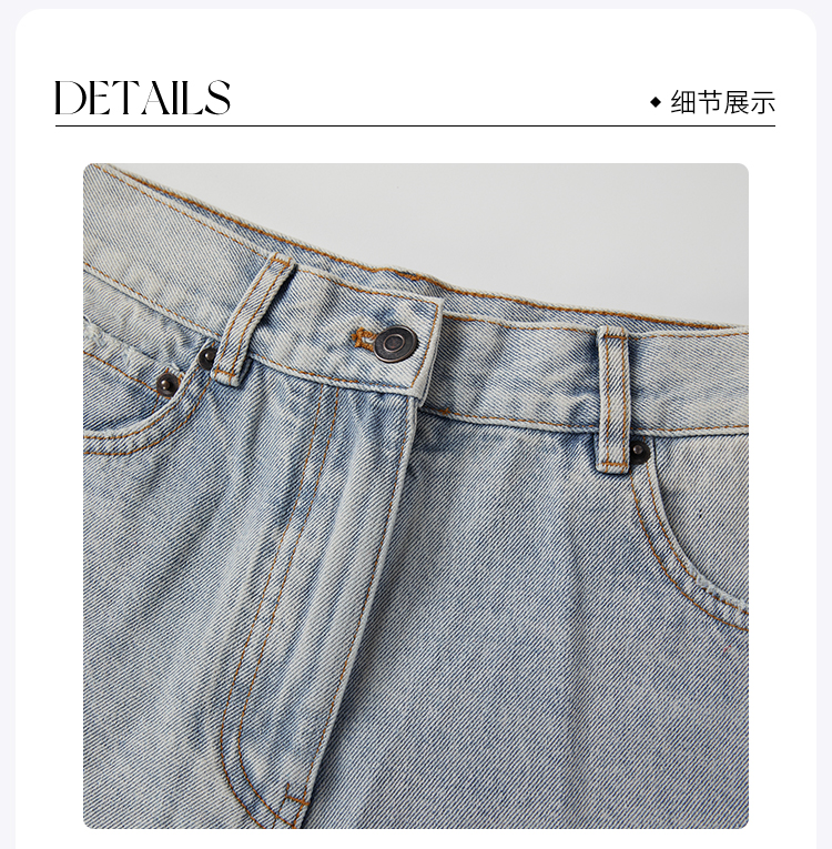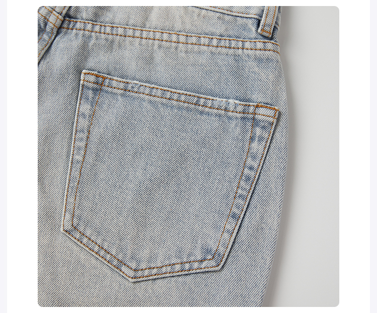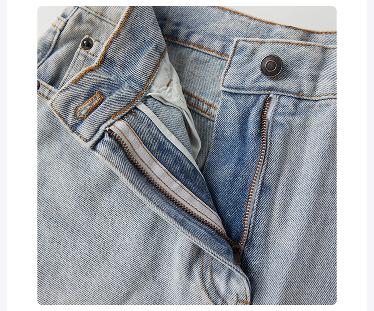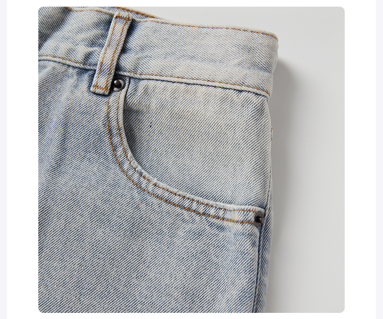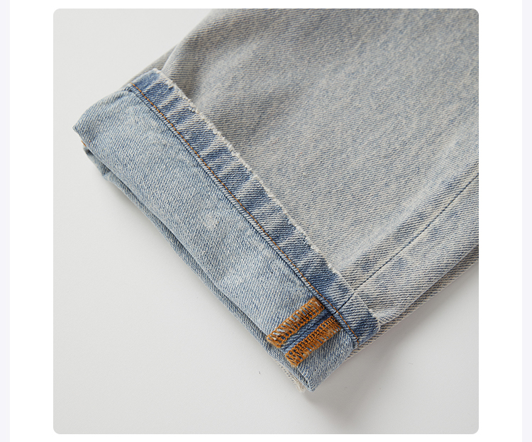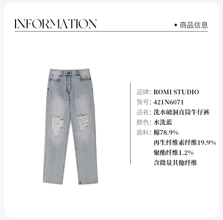 ROMI STUDIO“率性街头”高克重牛仔棉洗水破洞直筒牛仔裤 421N6071
