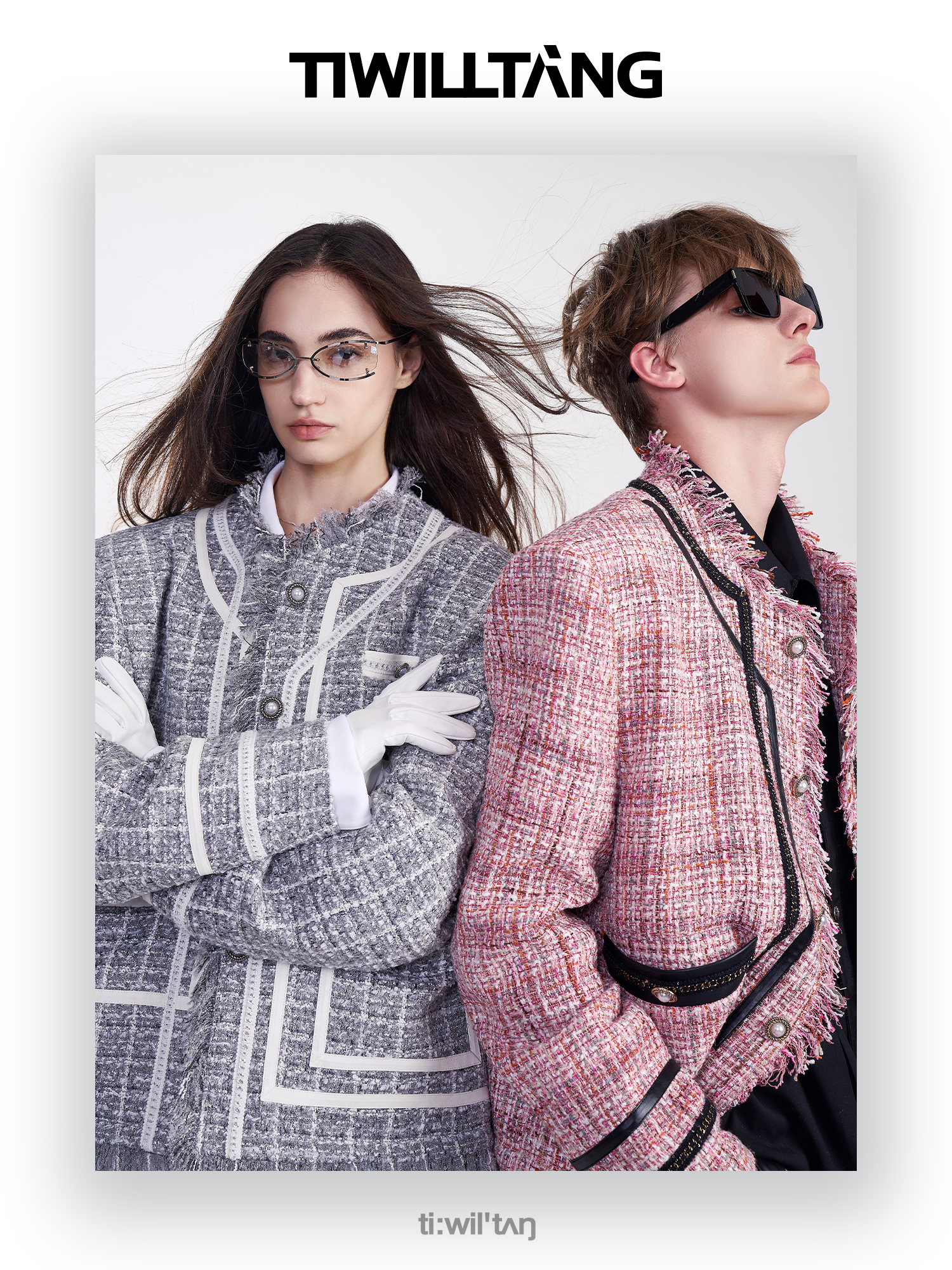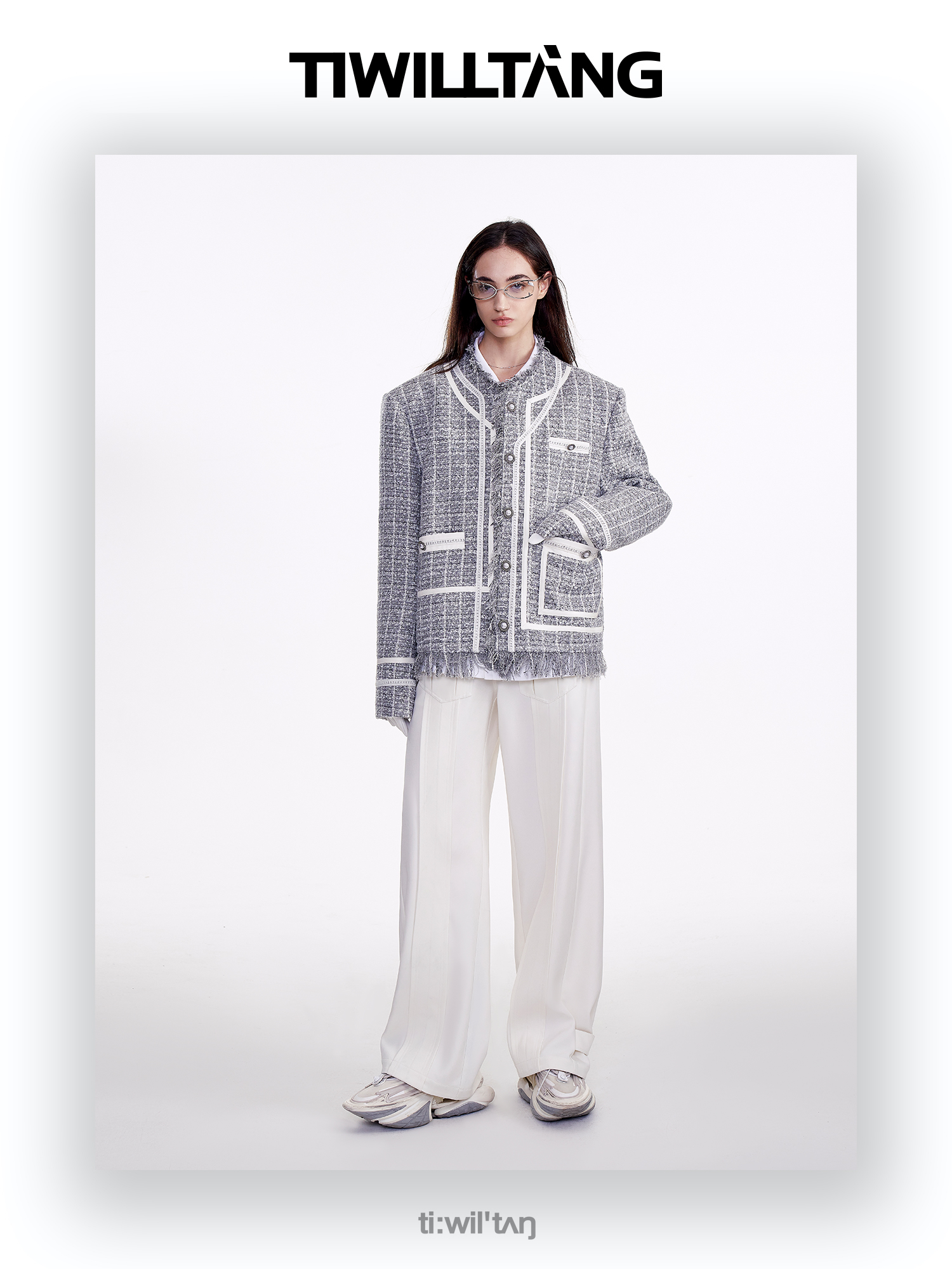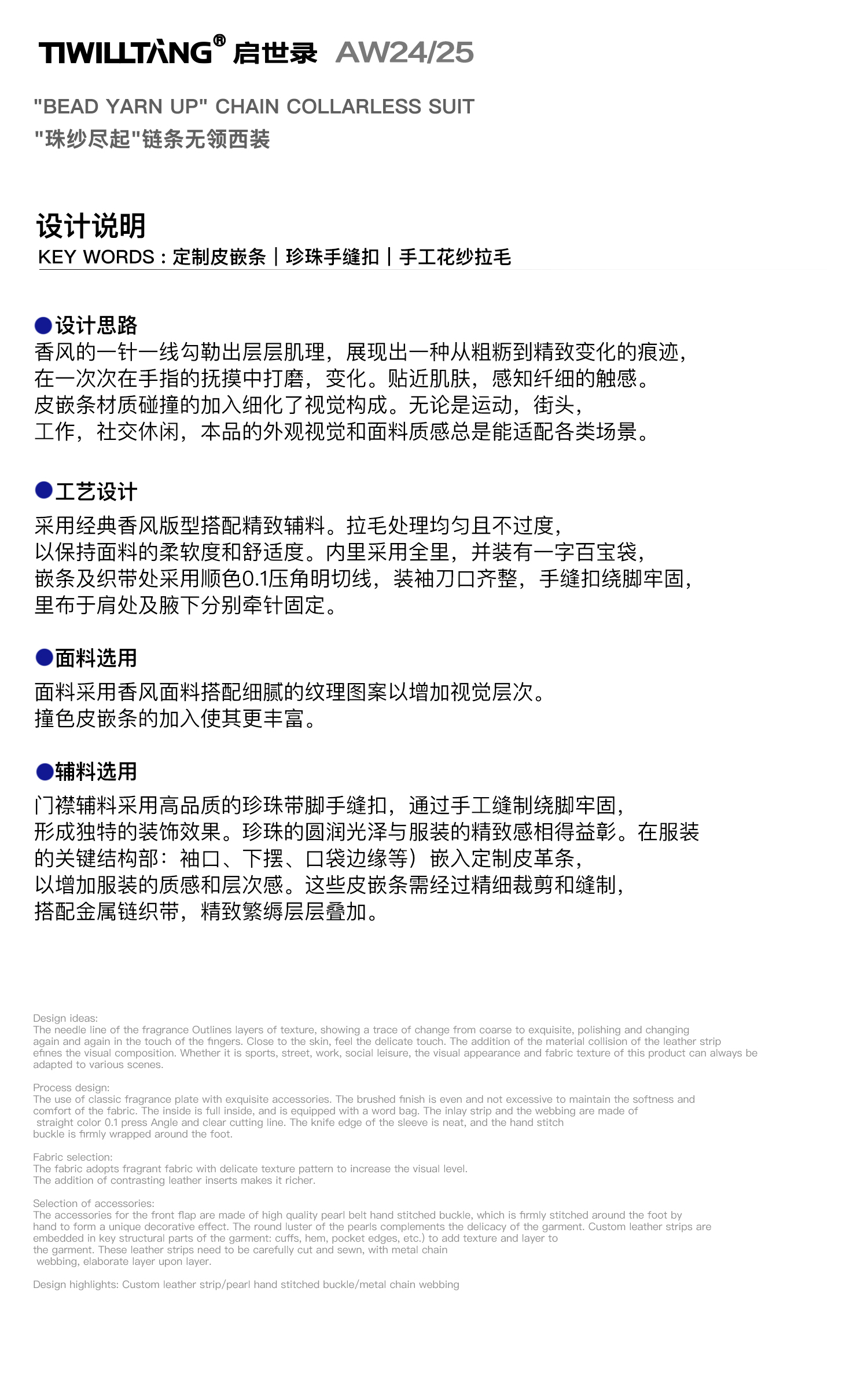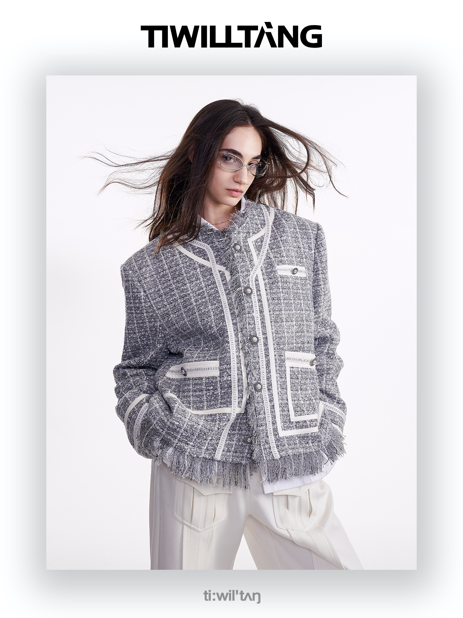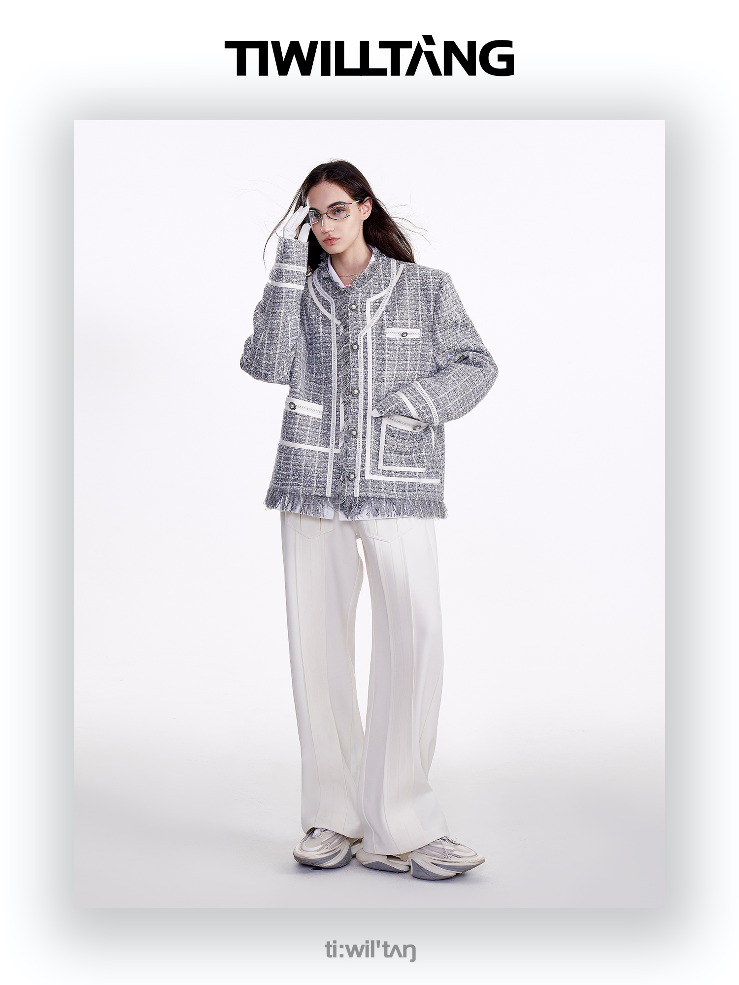 TIWLLTANG启世录"珠纱尽起"小香风链条无领西装