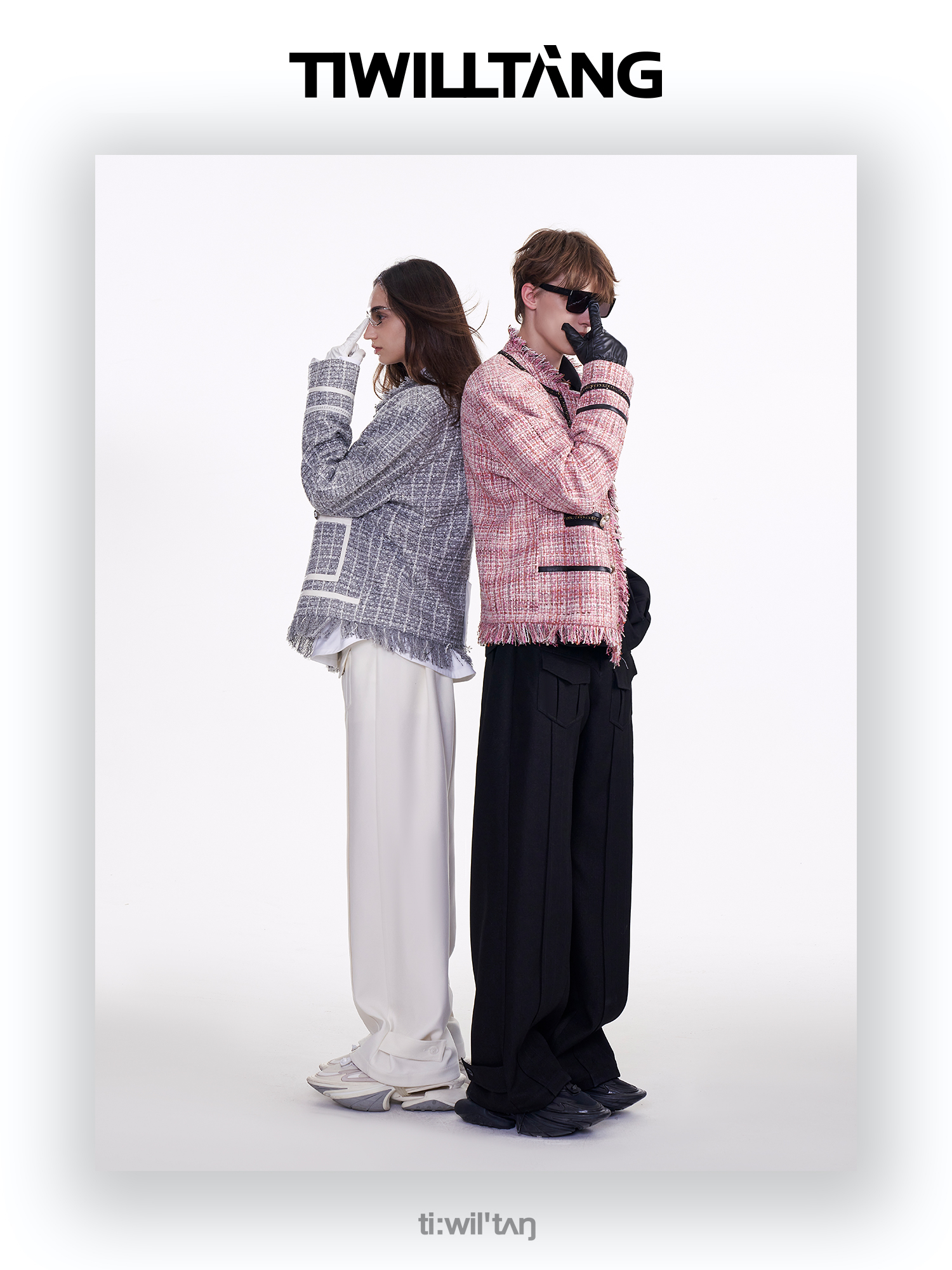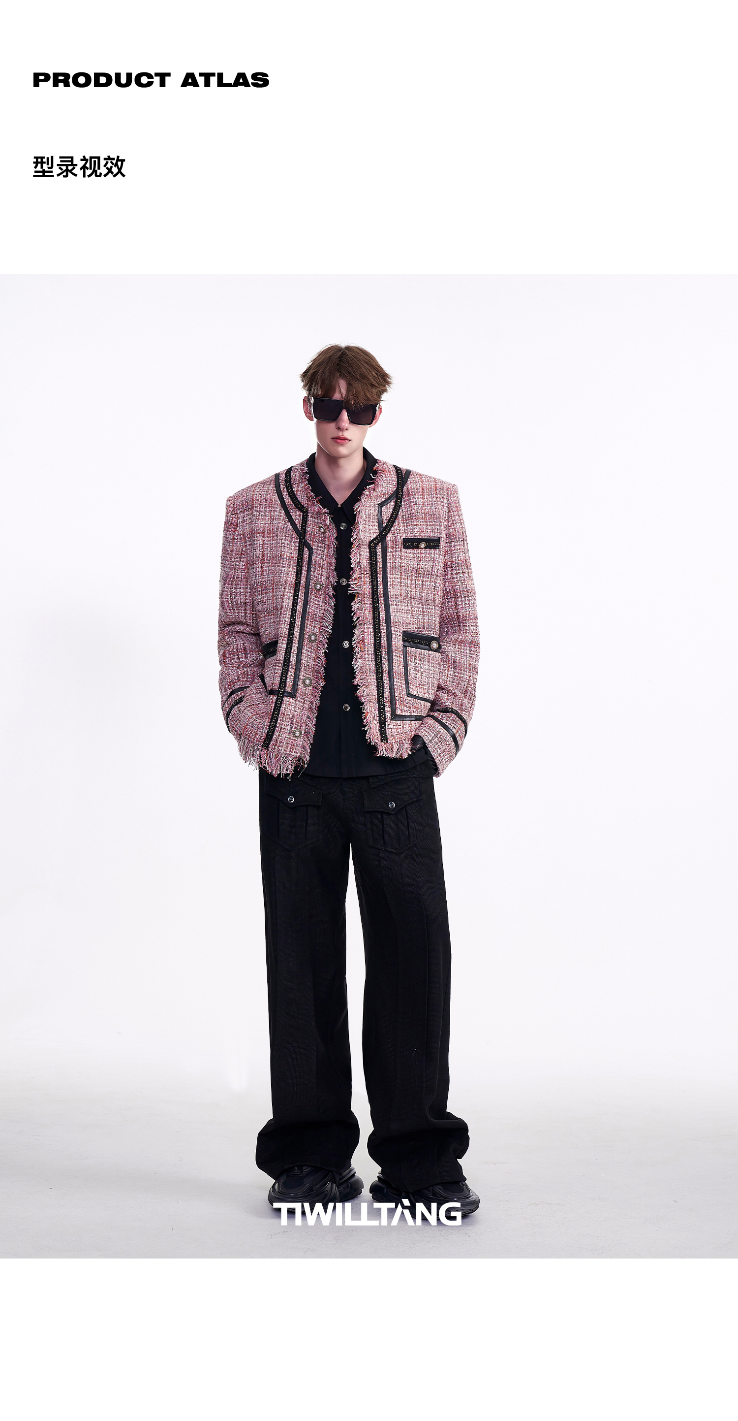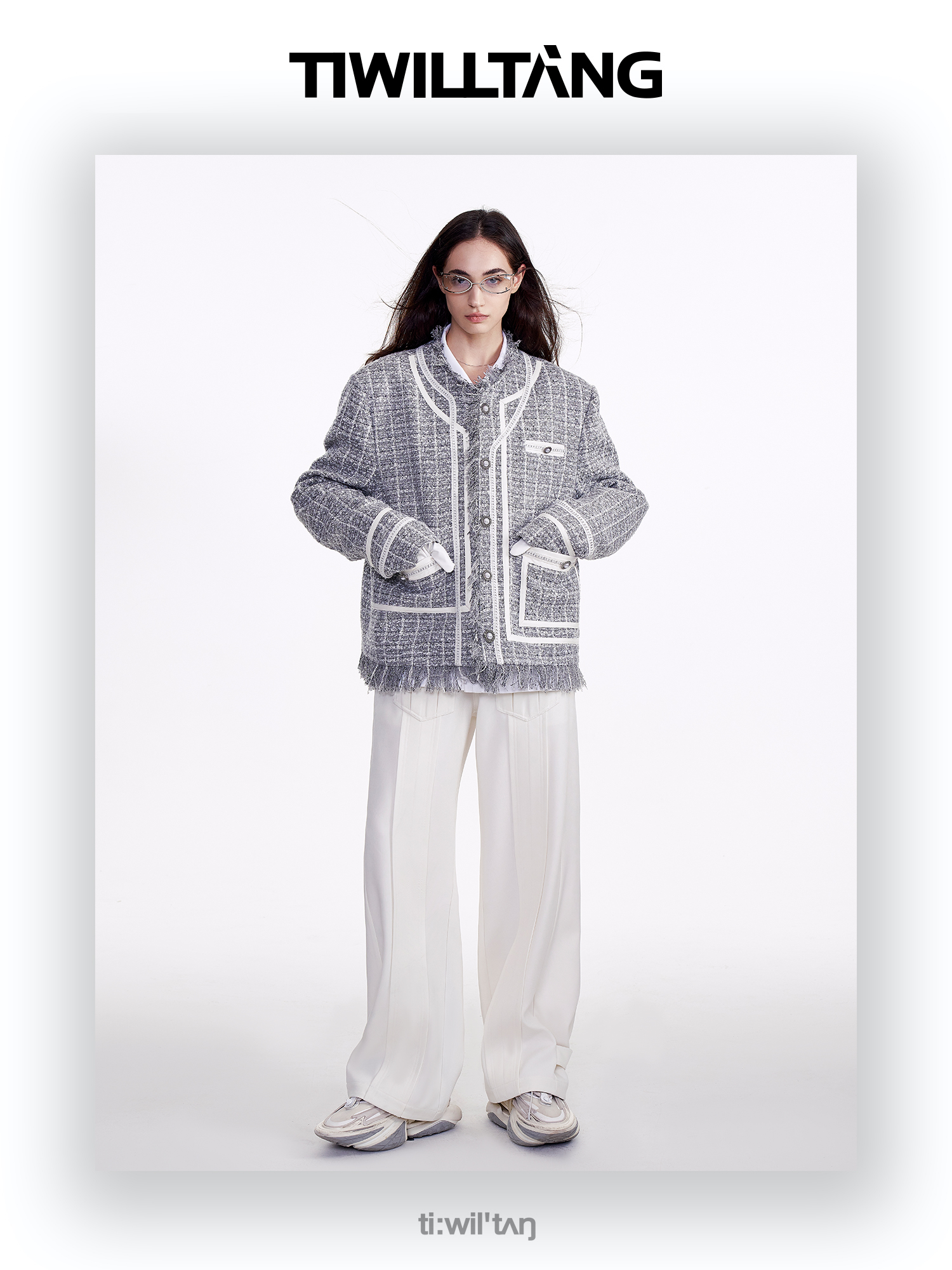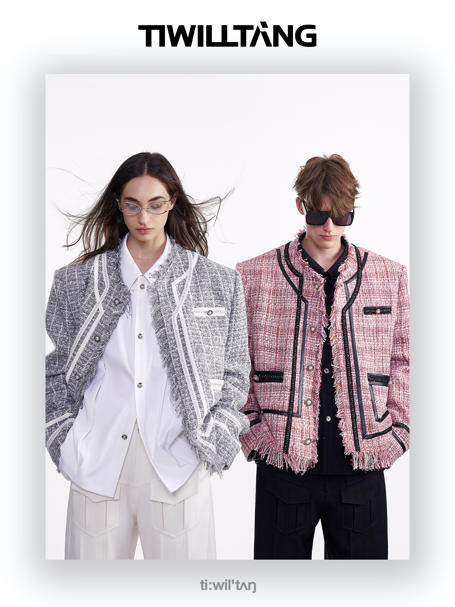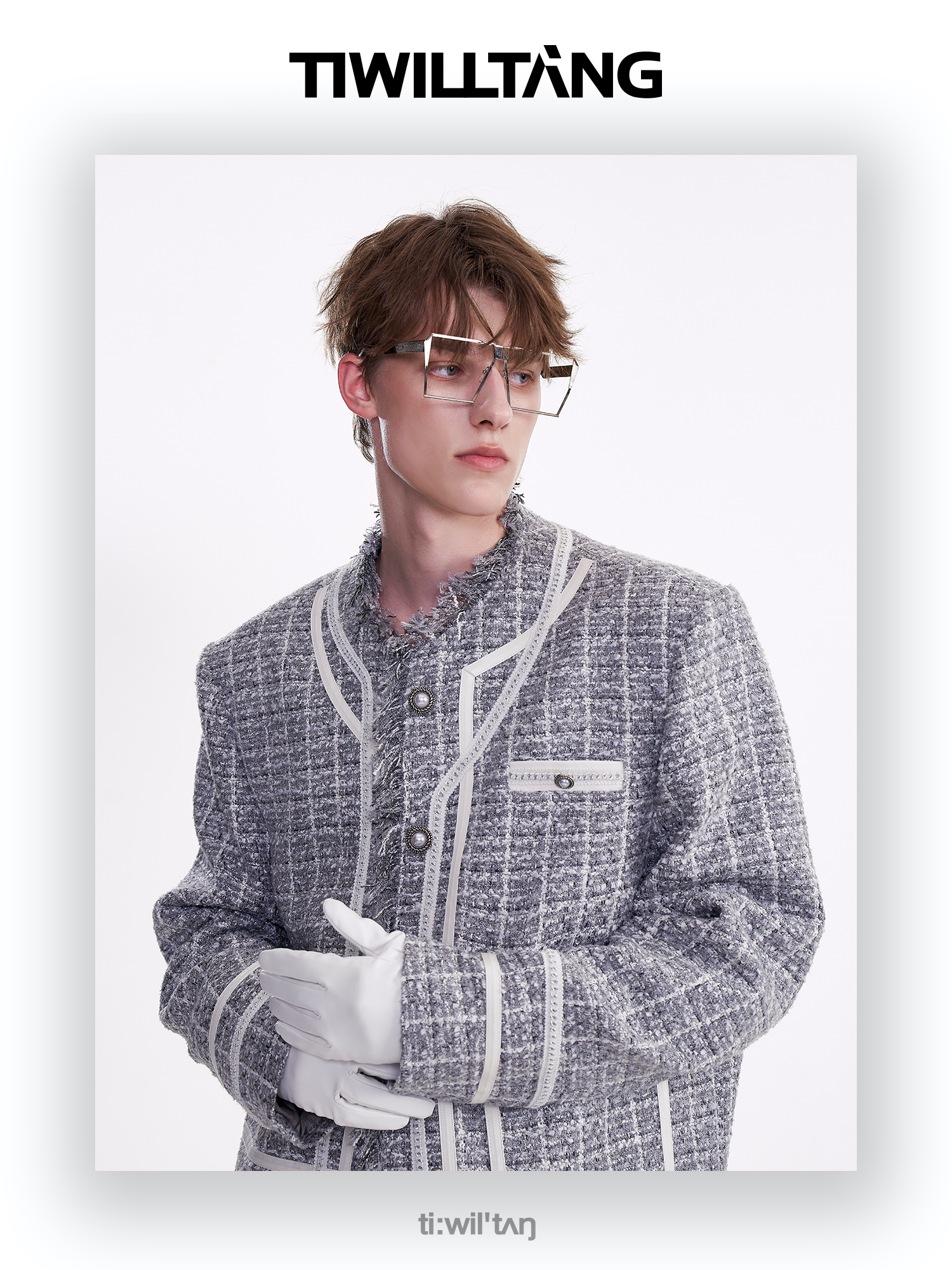 TIWLLTANG启世录"珠纱尽起"小香风链条无领西装