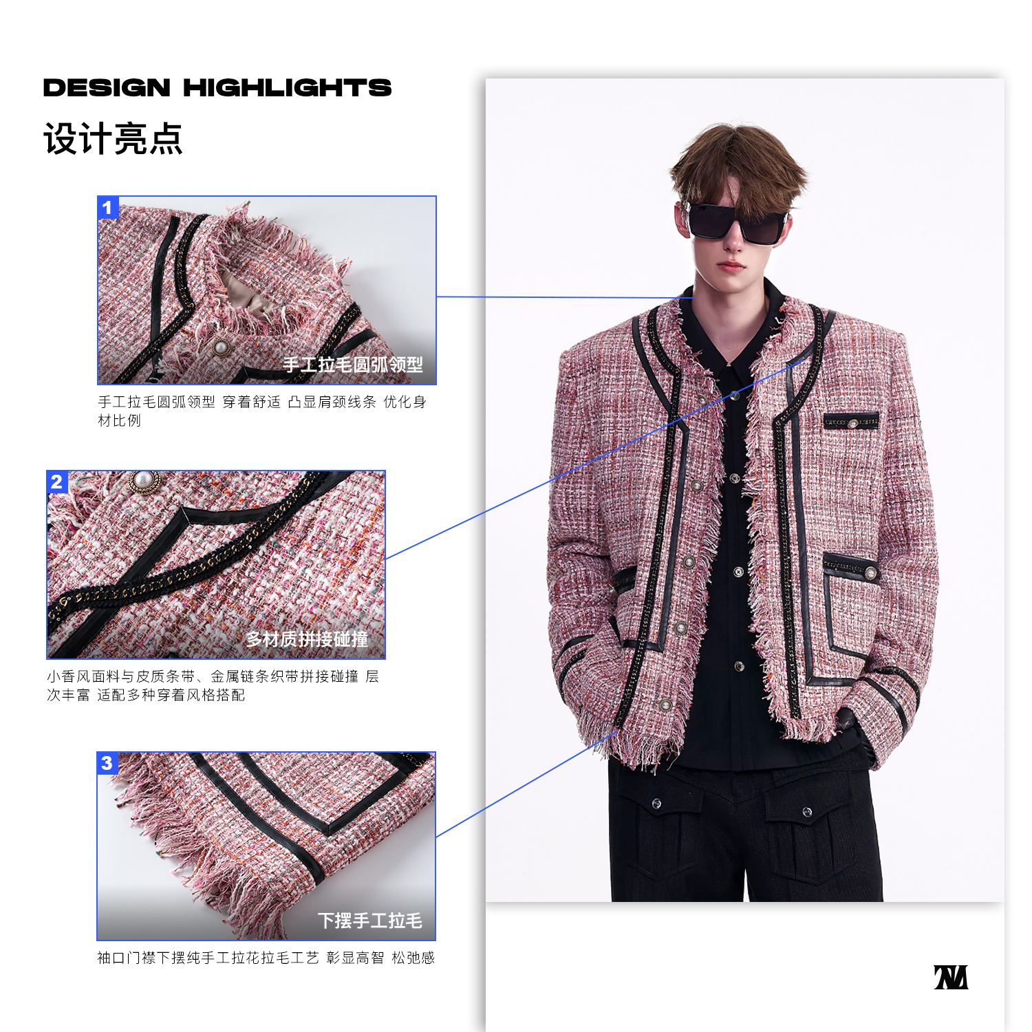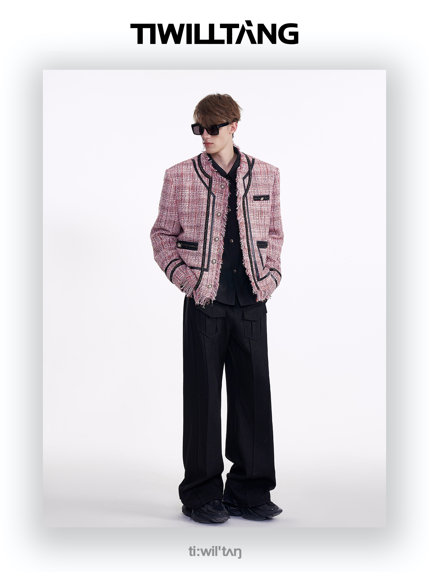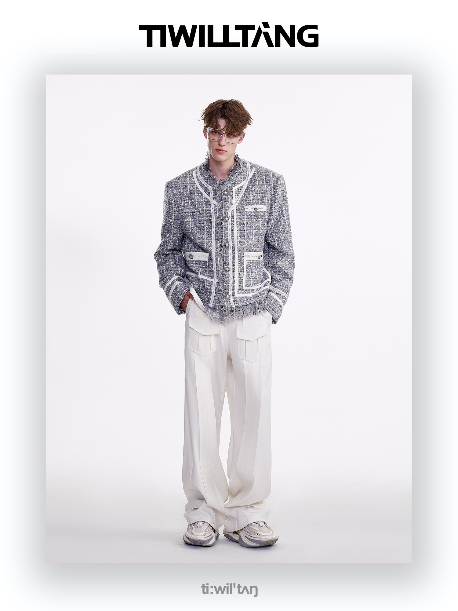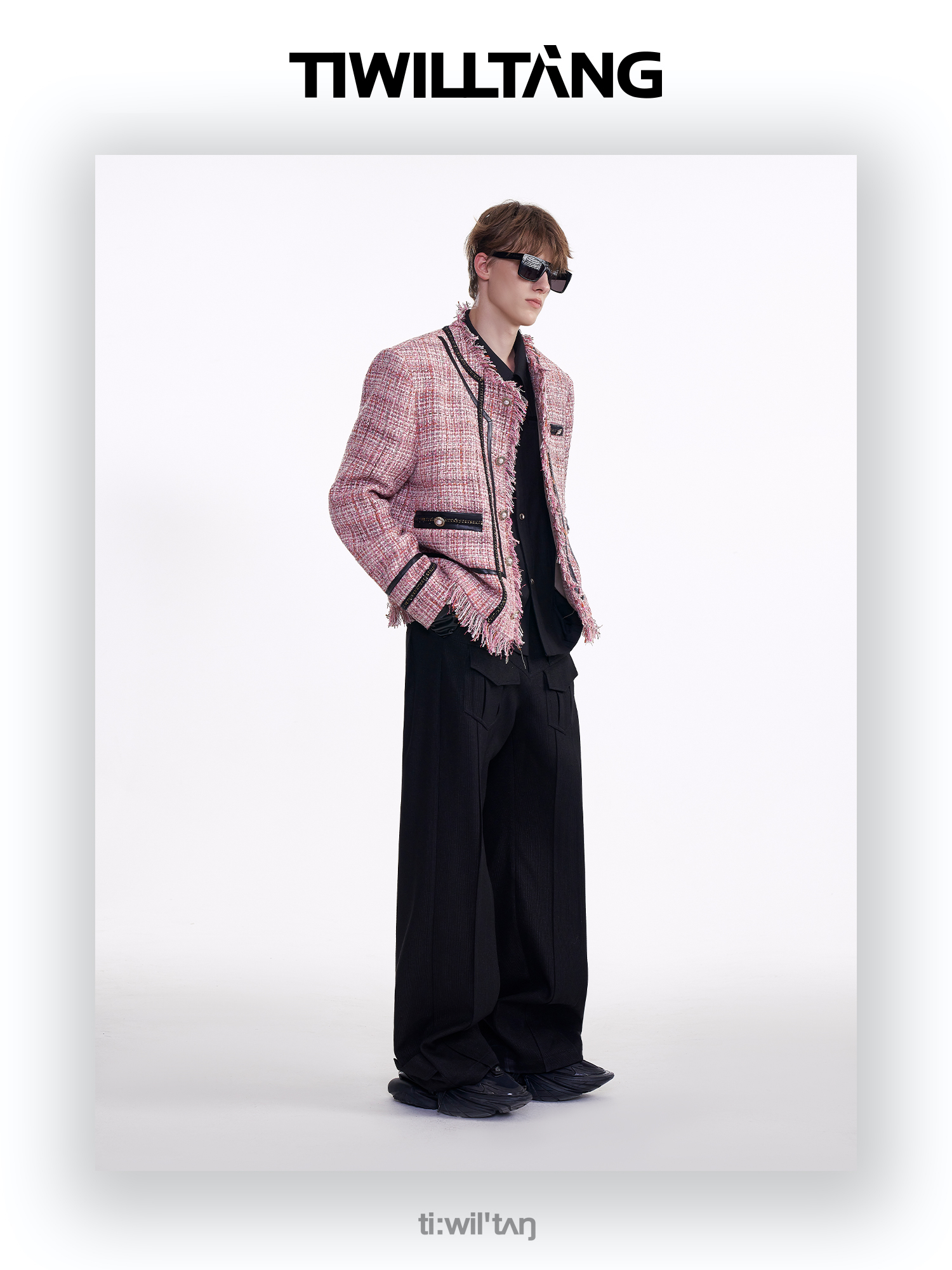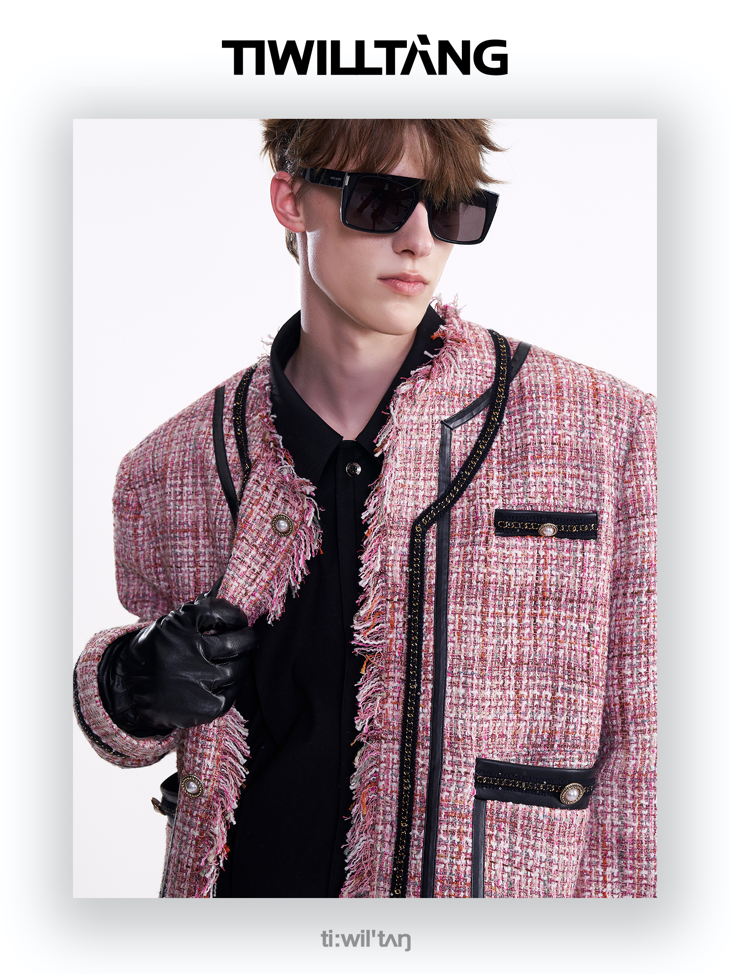 TIWLLTANG启世录"珠纱尽起"小香风链条无领西装