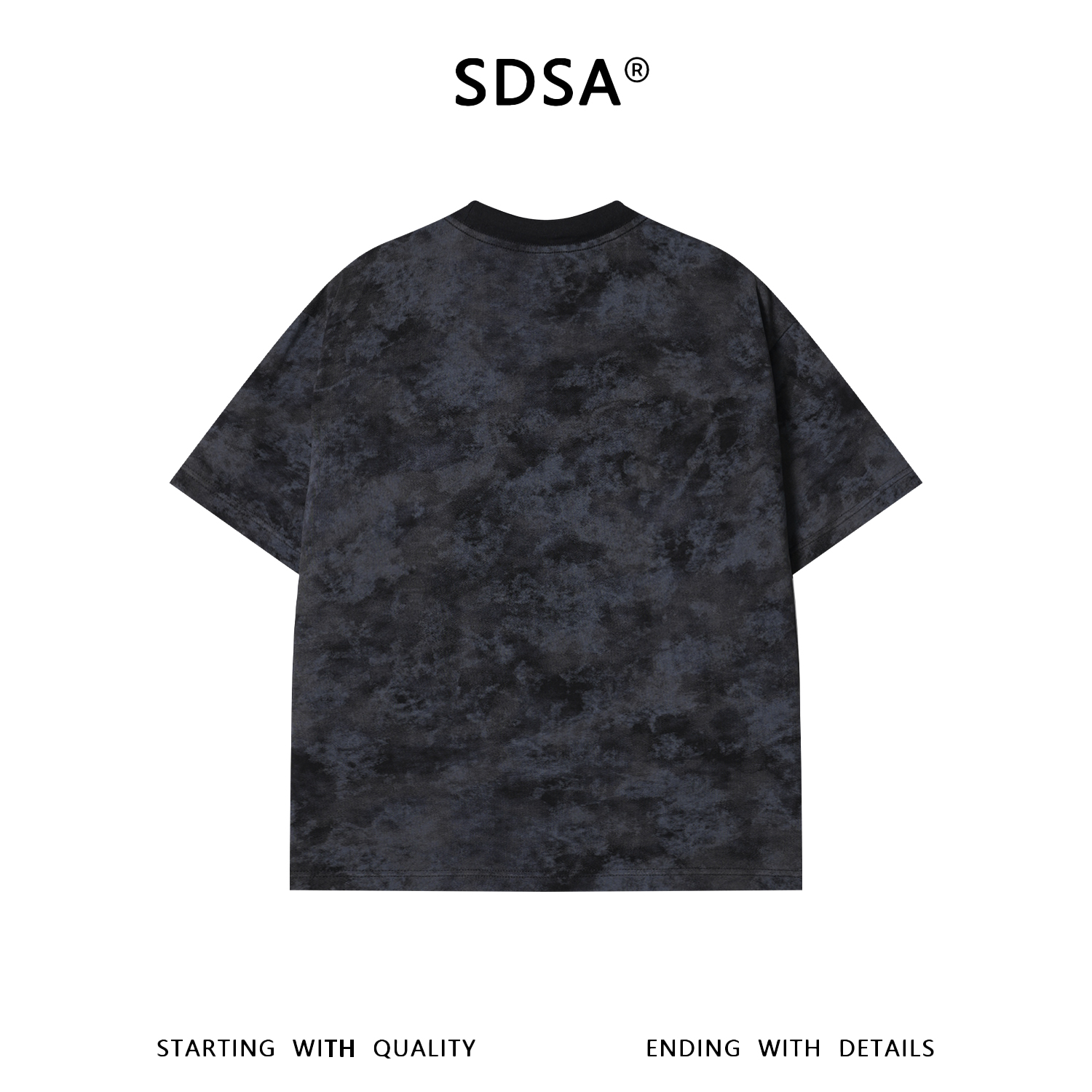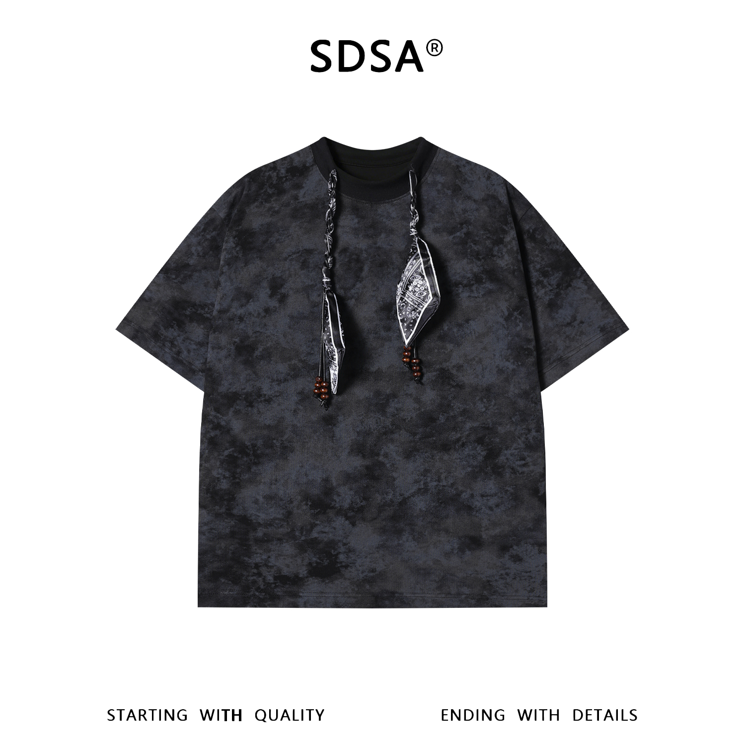SDSA男装2026新款轻奢小众设计扎染领系带装饰圆领短袖T恤百搭