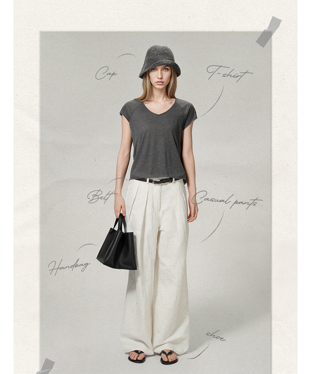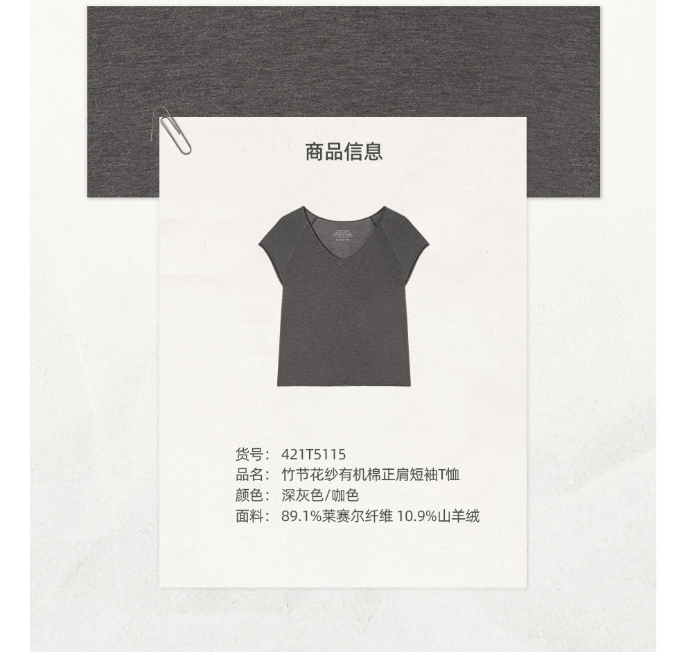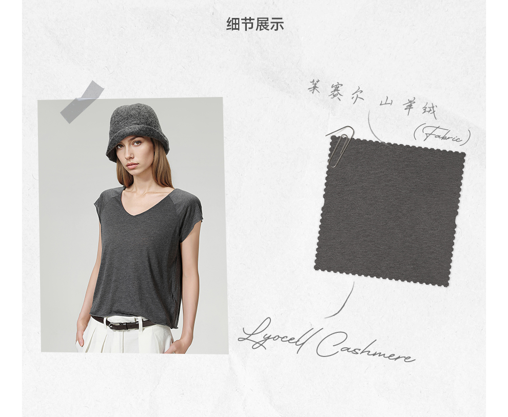 ROMI STUDIO“法式优雅”莱赛尔山羊绒混纺V领针织短袖T恤 421T5115