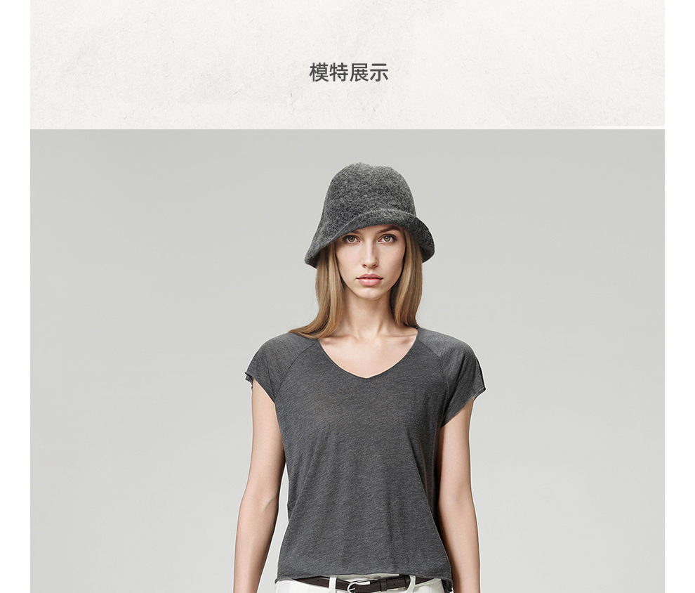 ROMI STUDIO“卷边羊毛帽”显脸小纯羊毛卷曲帽檐渔夫帽 RWCWP07026