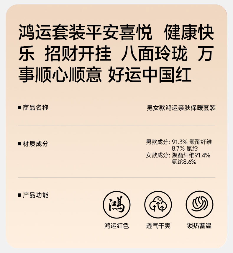 严选 | 草本初色马年限定鸿运羊绒蚕丝保暖润肤套装 男女同款保暖套装 2801/2802