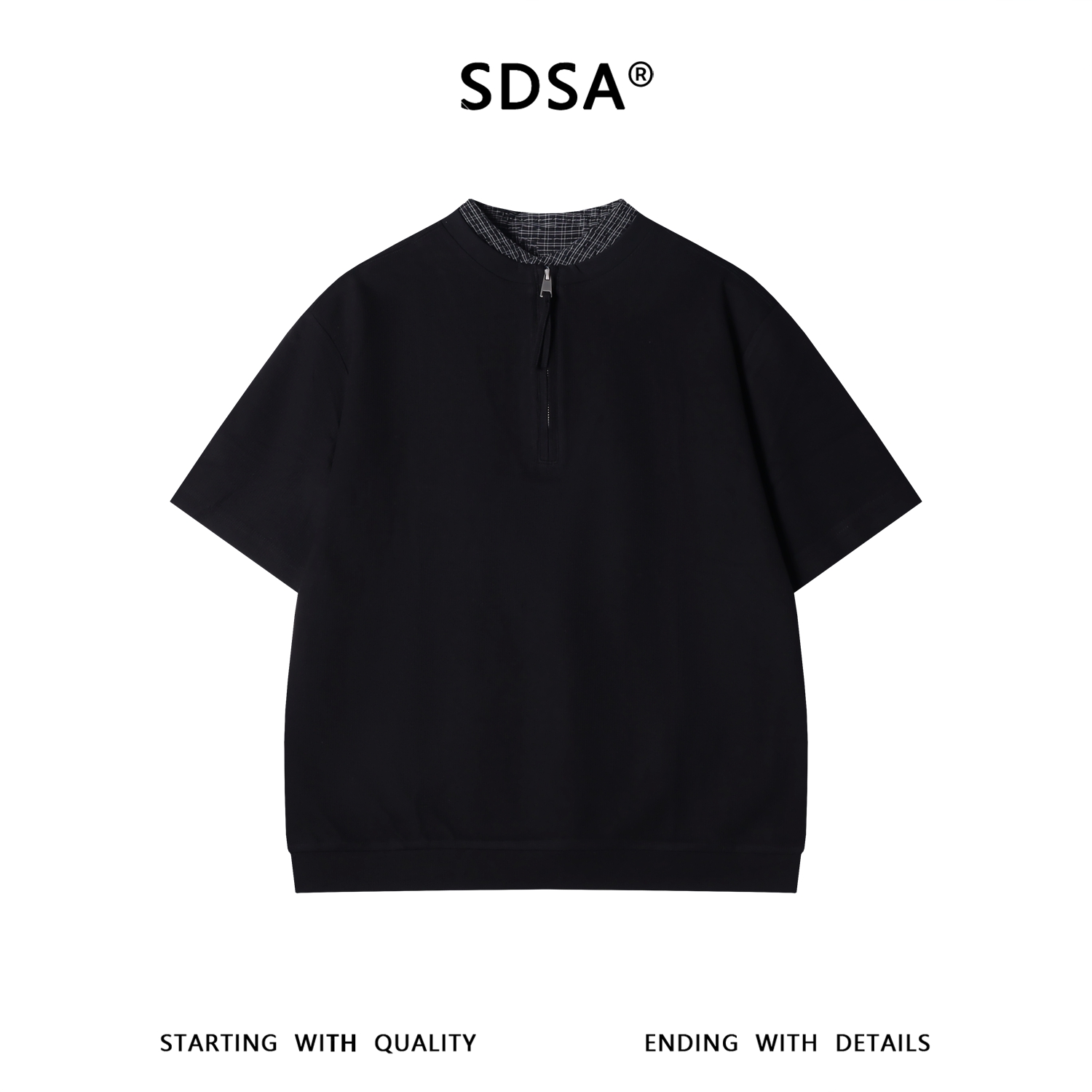 SDSA男装2026新款高贵轻奢韩系拼接半拉链立领短袖T恤百搭上衣潮