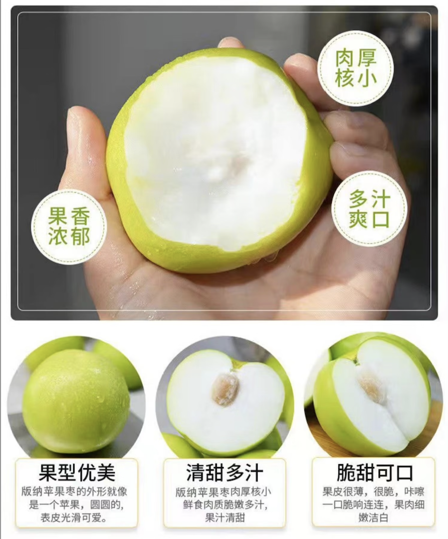 【京东快递】 云南西双版纳苹果枣 牛奶枣贵妃枣 大青枣 清甜多汁 脆爽化渣 ATX