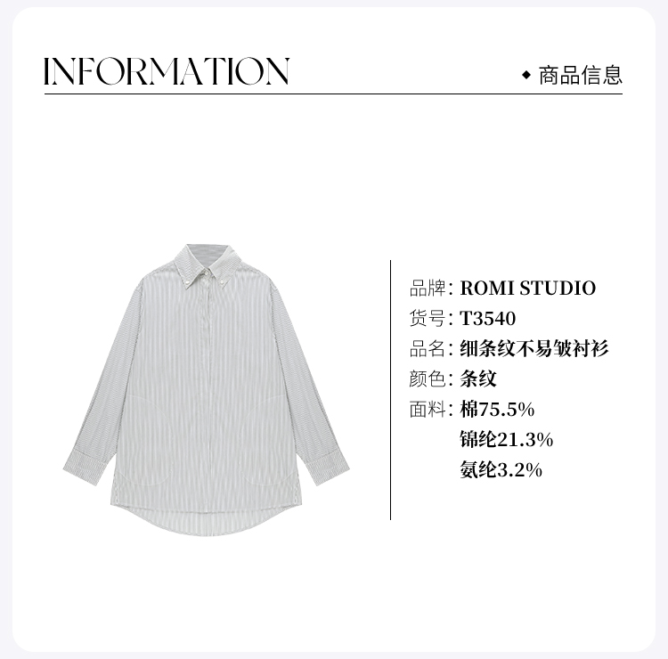 ROMI STUDIO“Cozy Design”棉混纺宽松挺阔不易皱细条纹衬衣T3540