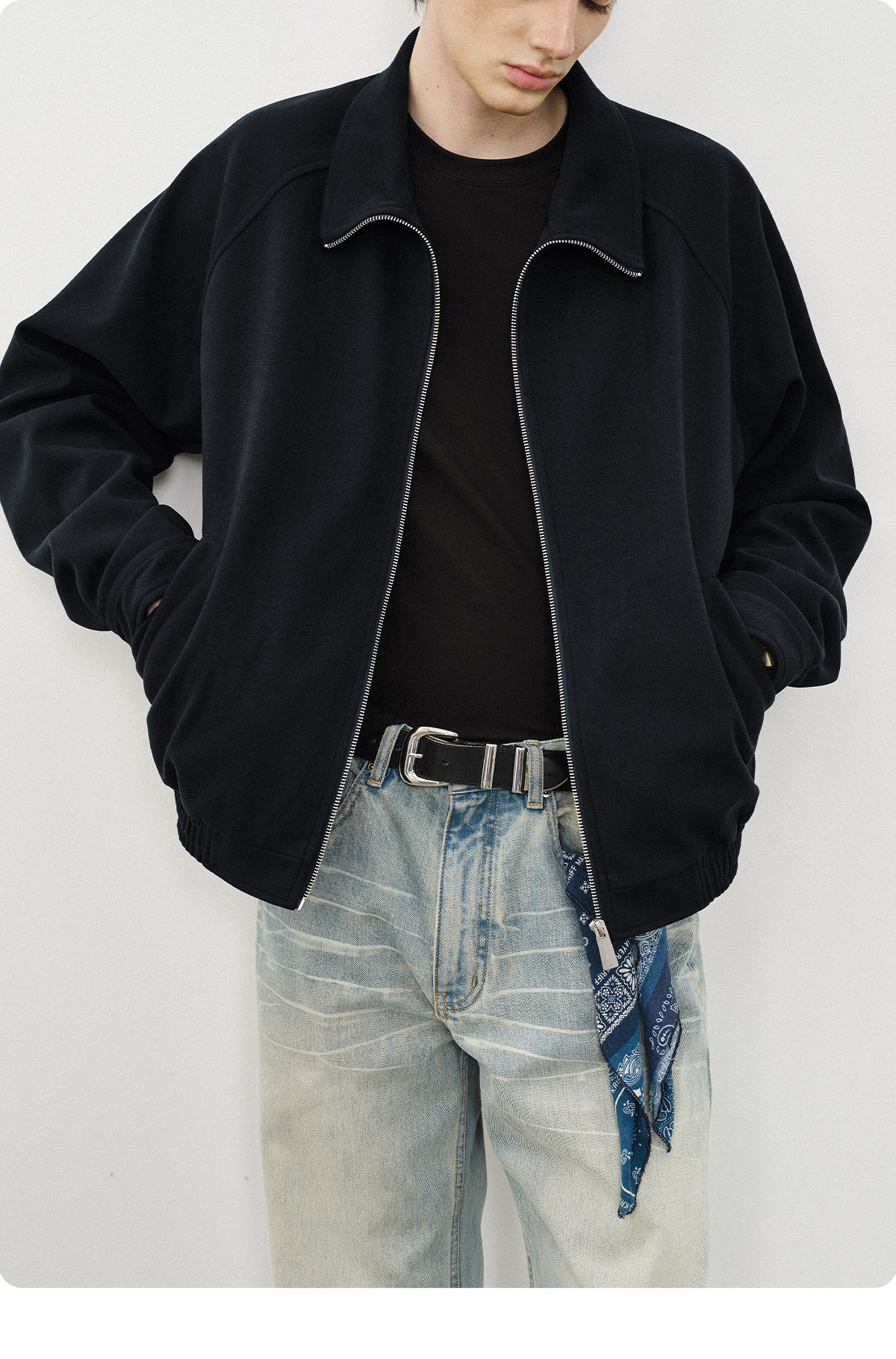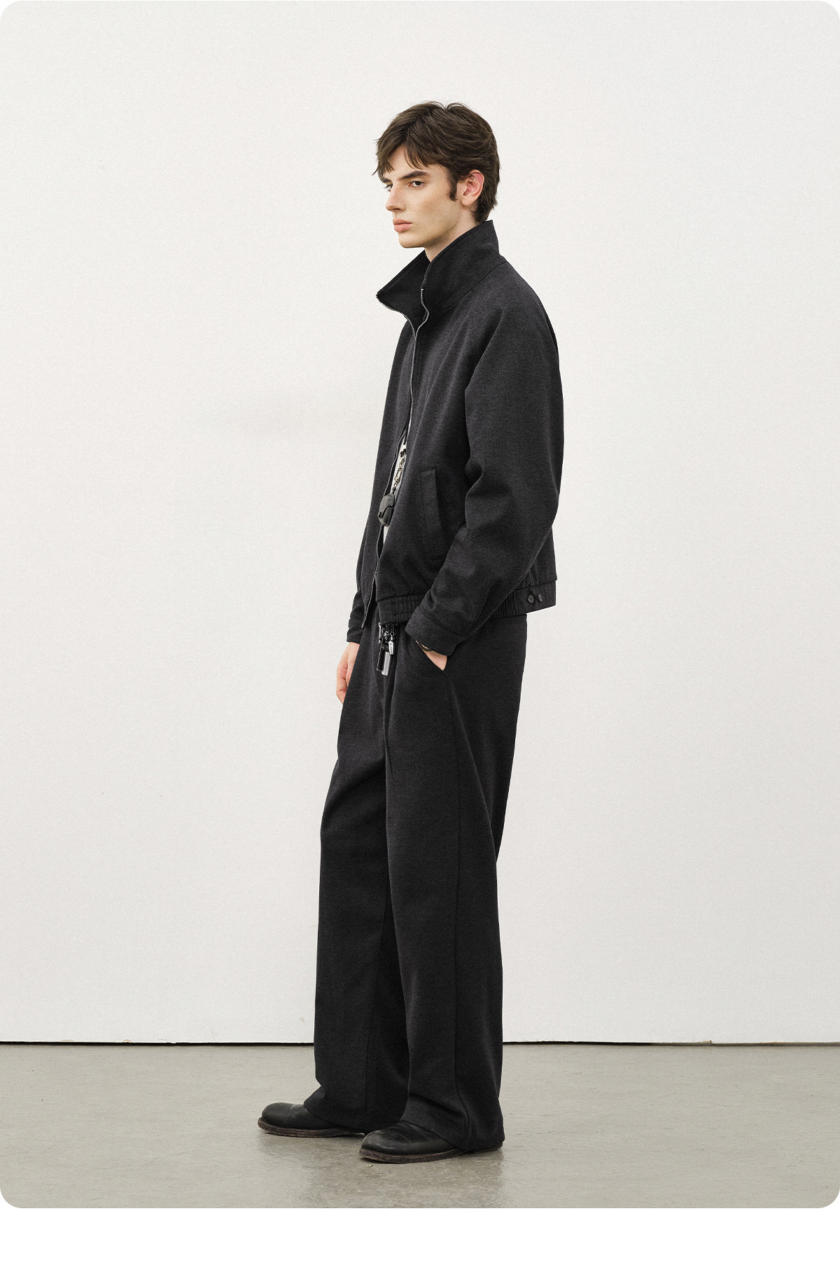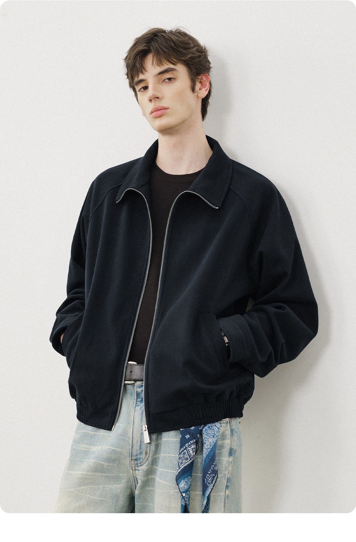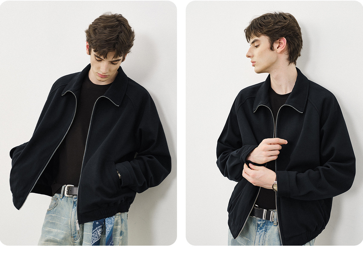 714street仿羊绒毛呢立领夹克男秋冬新款卫衣外套老钱风穿搭