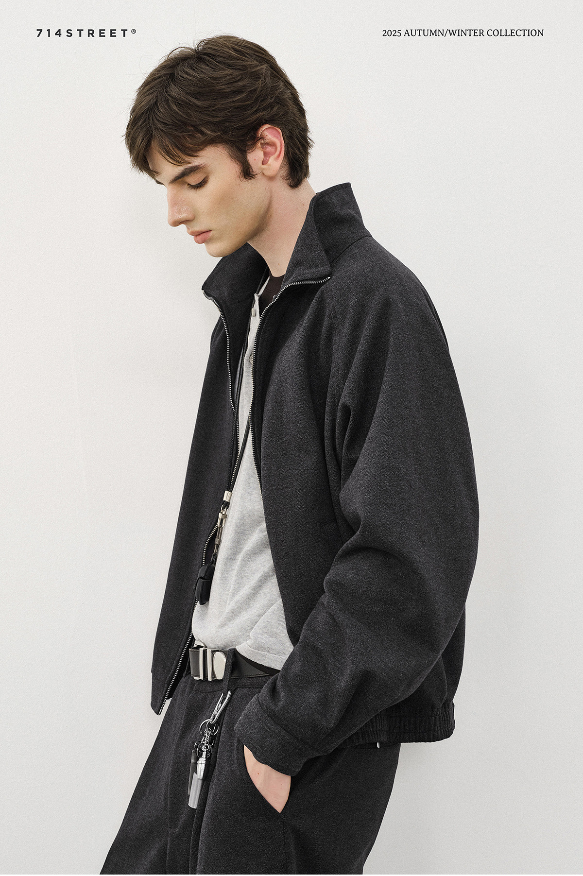 714street TR仿毛呢复古夹克2025秋冬微宽松落肩老钱风穿搭外套男