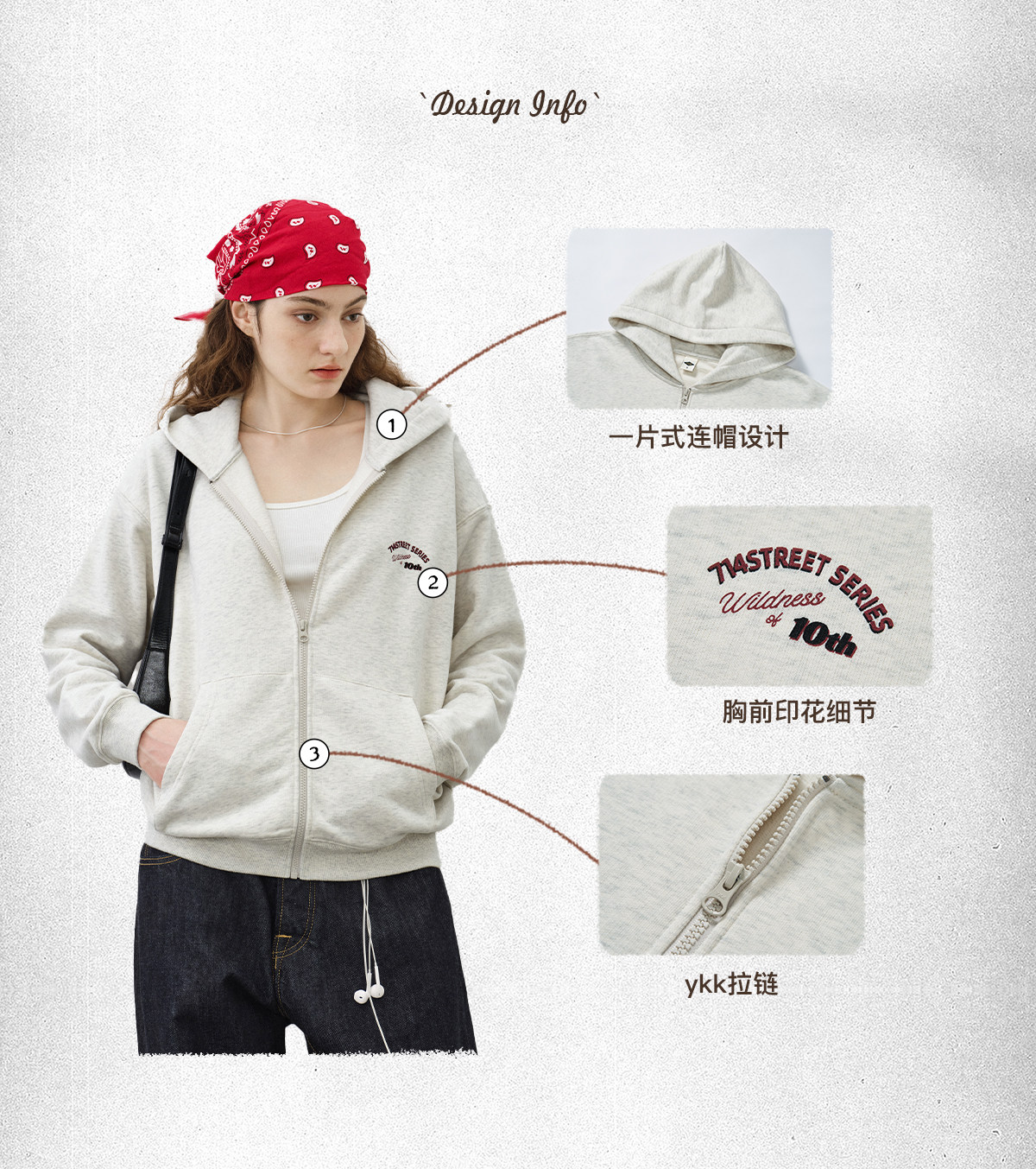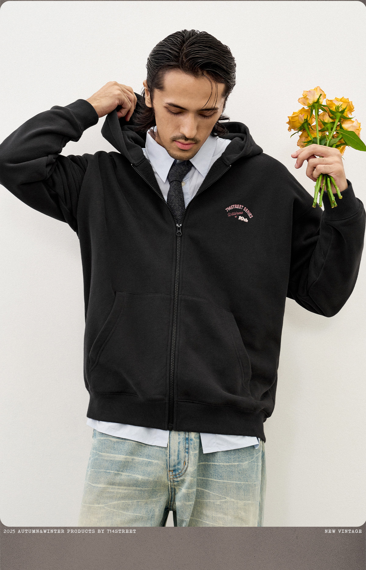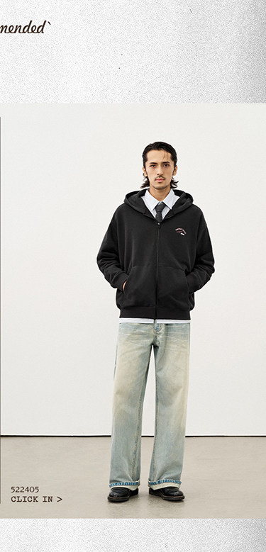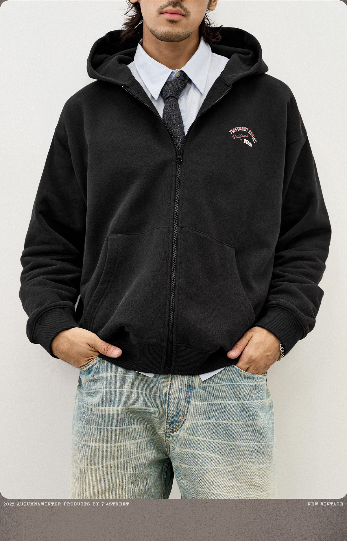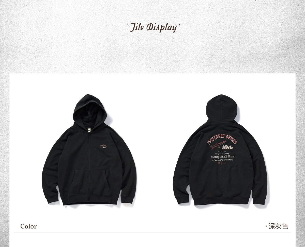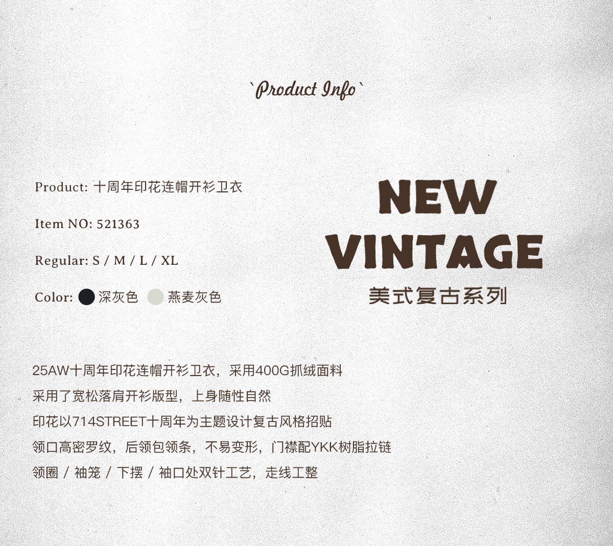 714street复古印花连帽卫衣开衫男2025秋冬潮牌情侣帽衫宽松外套
