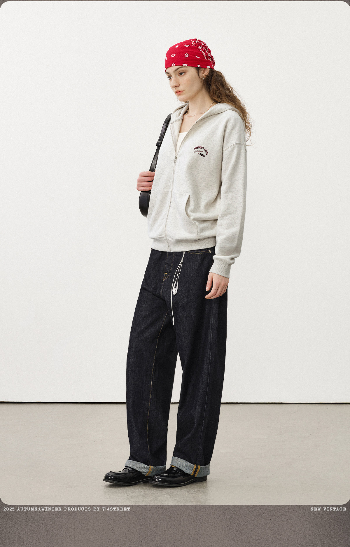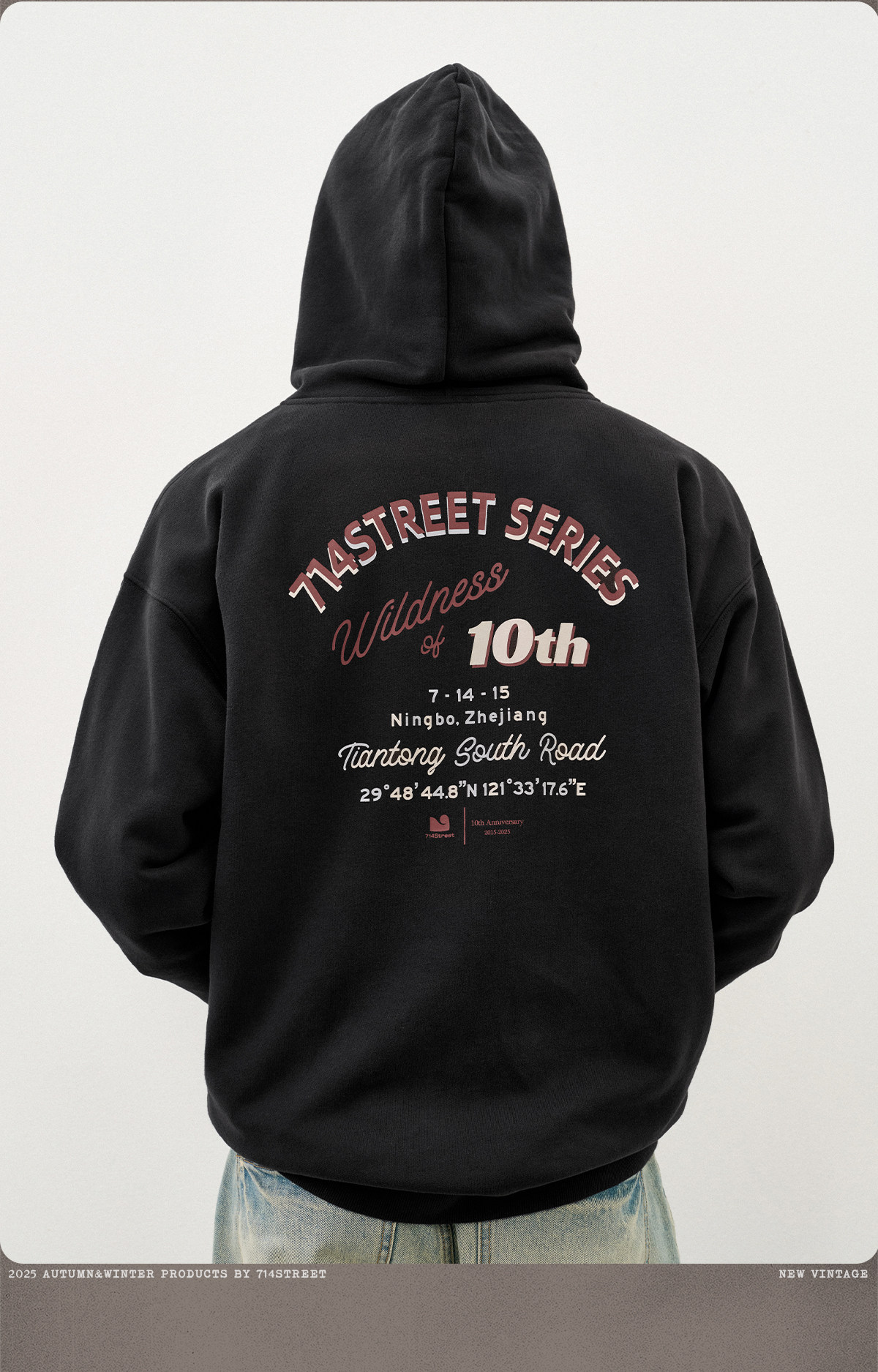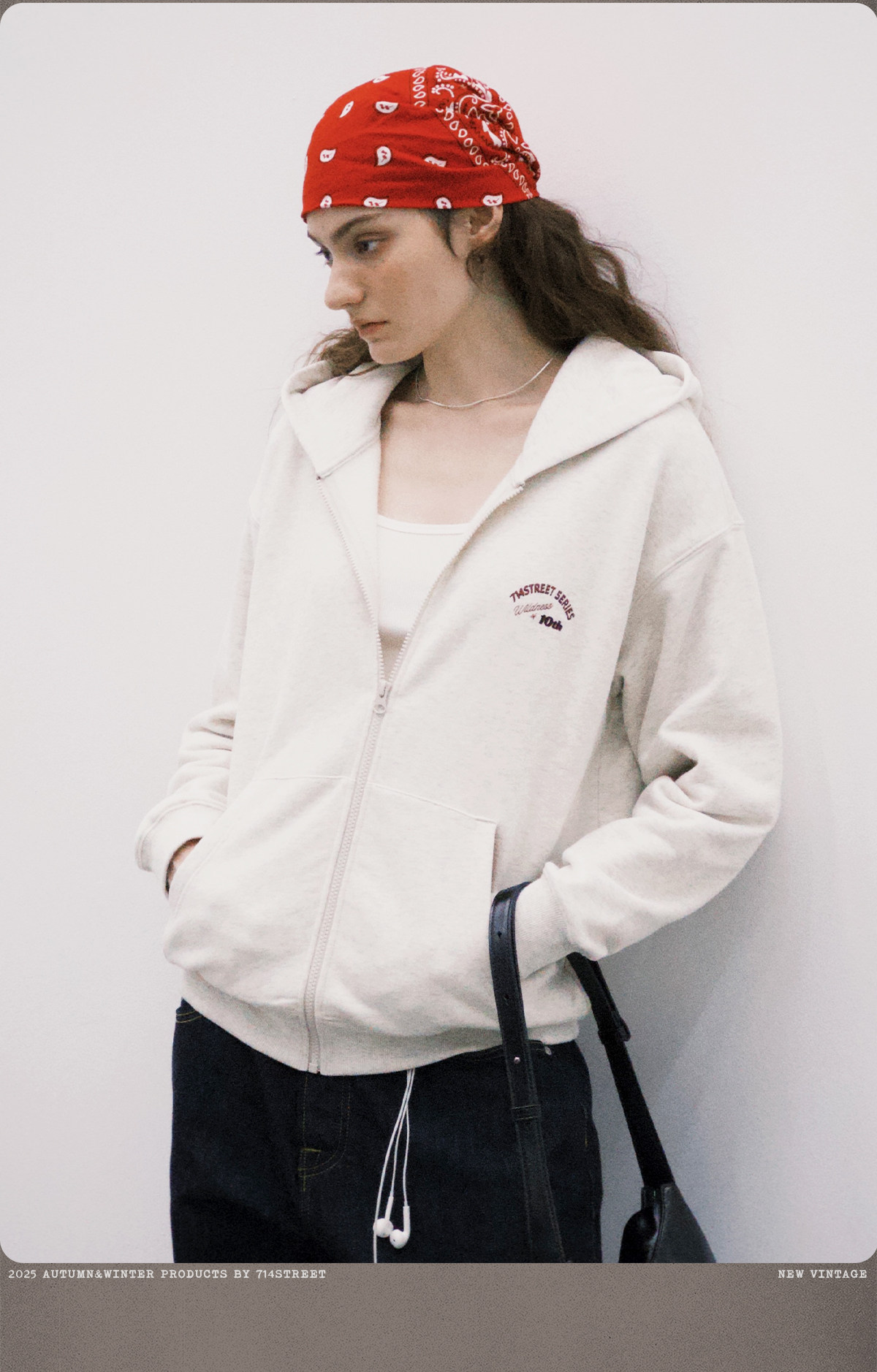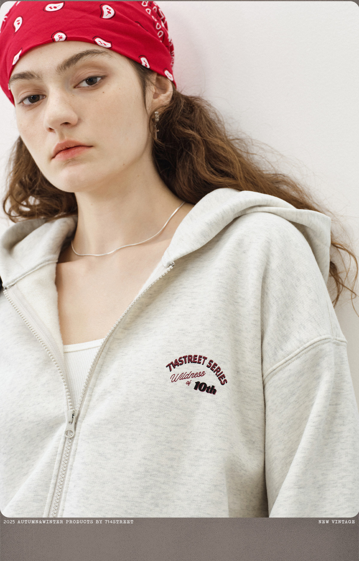714street复古印花连帽卫衣开衫男2025秋冬潮牌情侣帽衫宽松外套