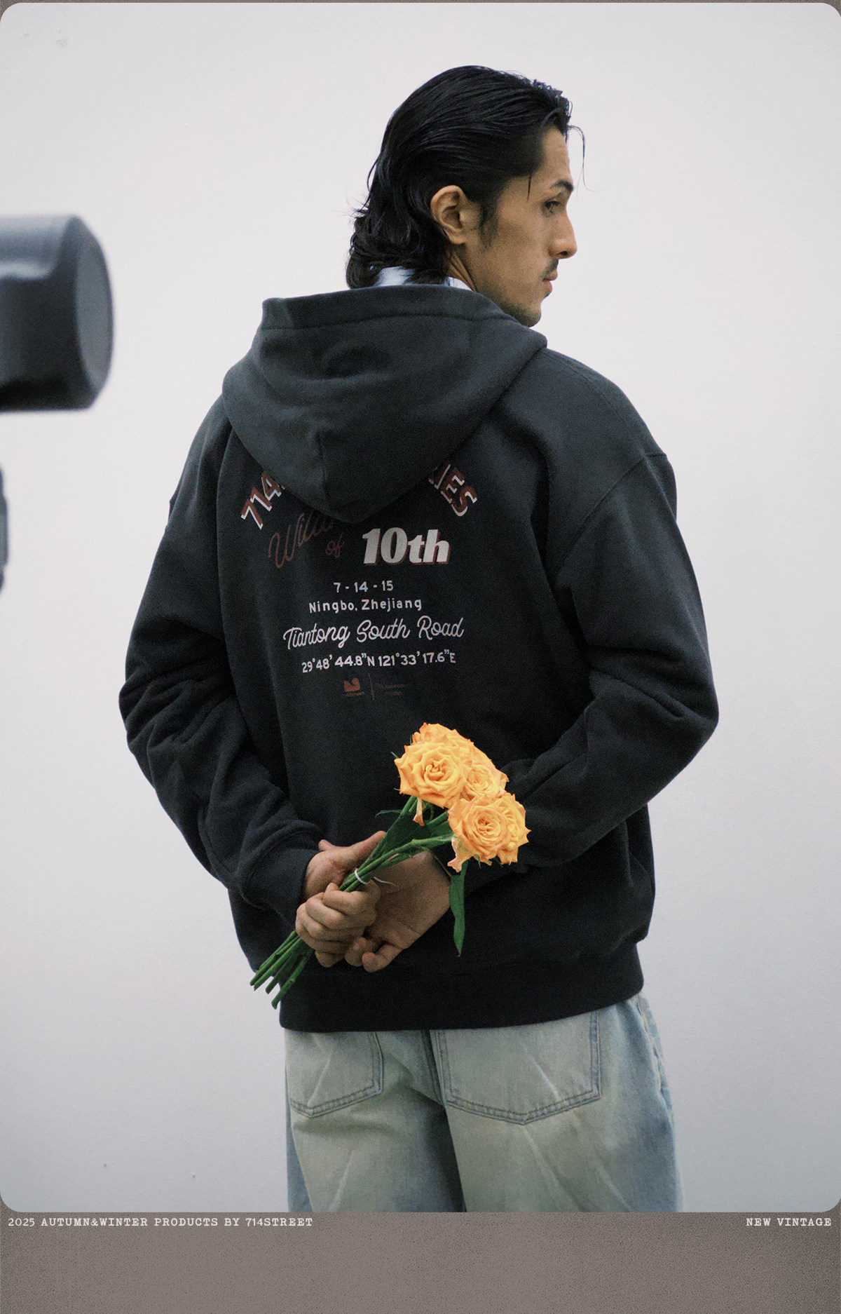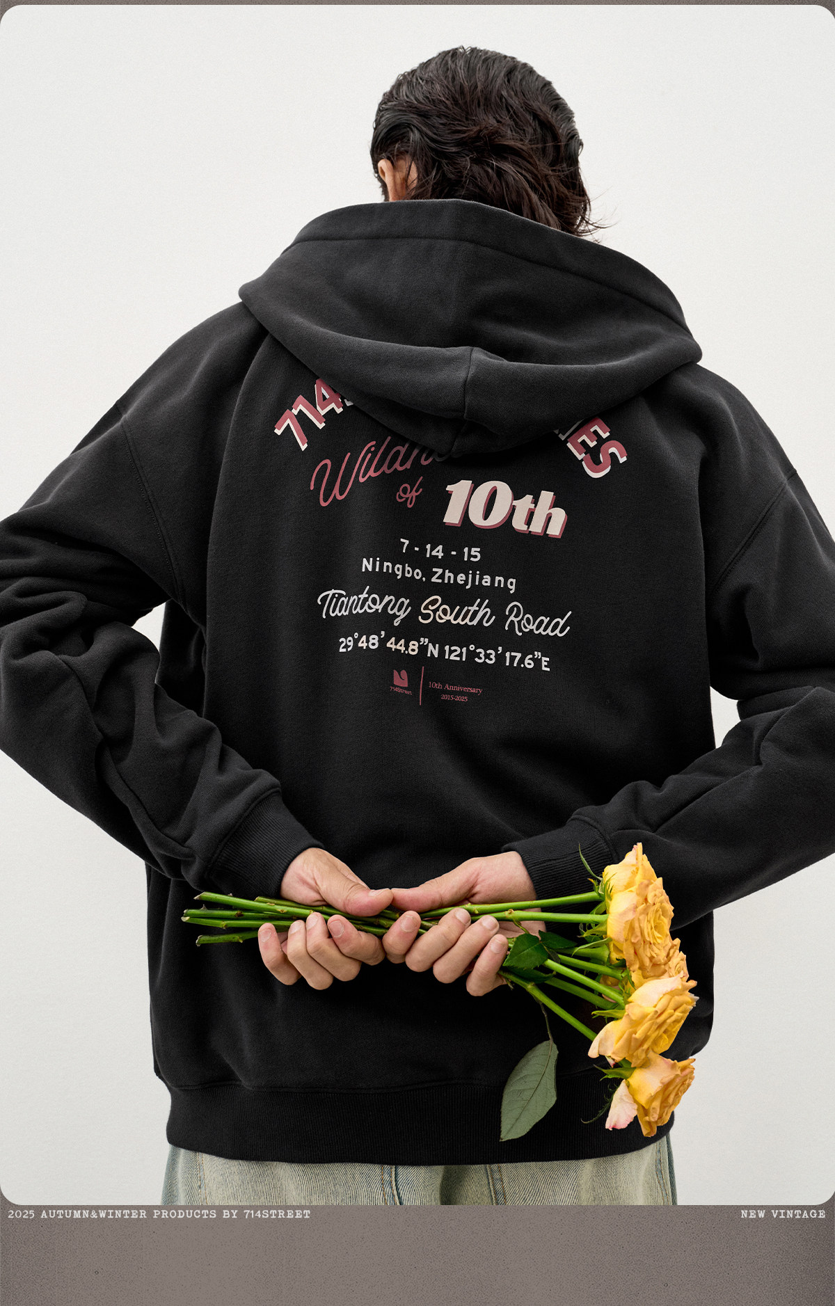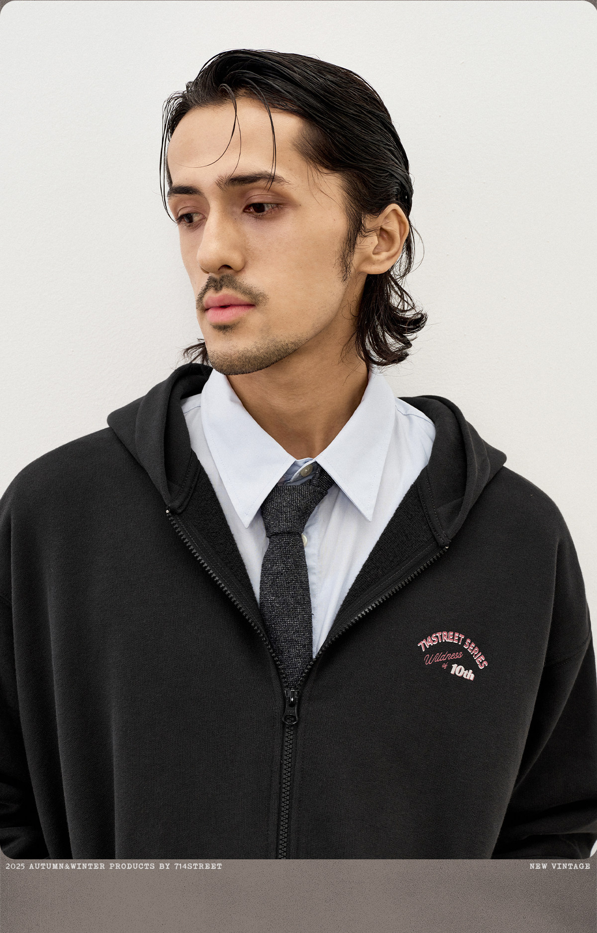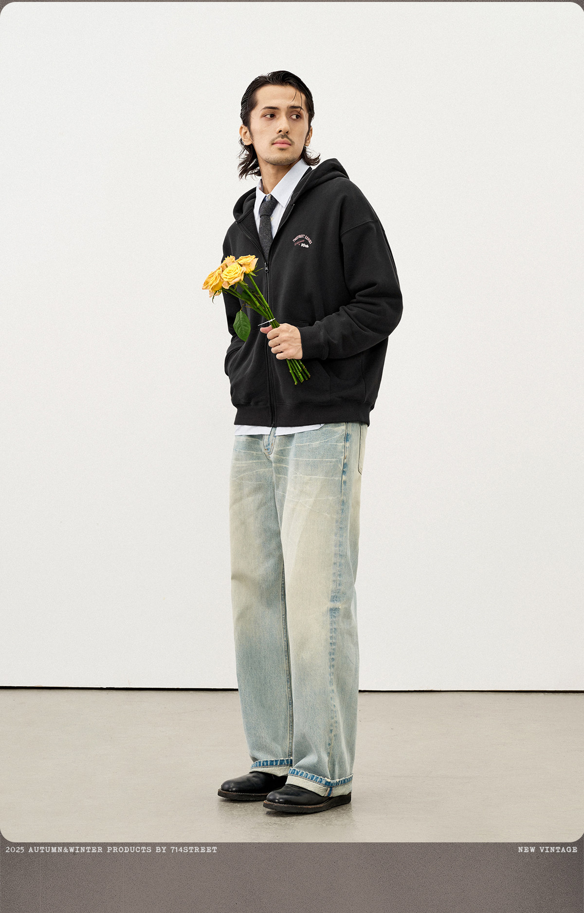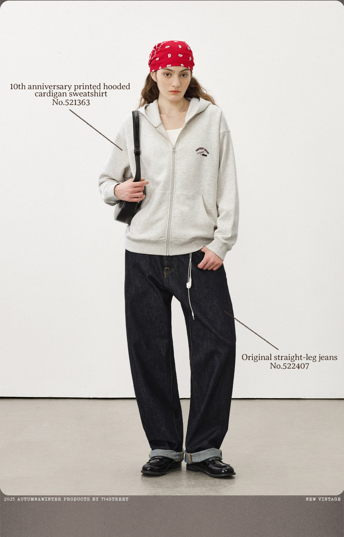 714street复古印花连帽卫衣开衫男2025秋冬潮牌情侣帽衫宽松外套