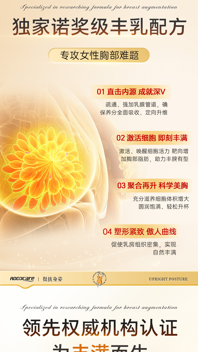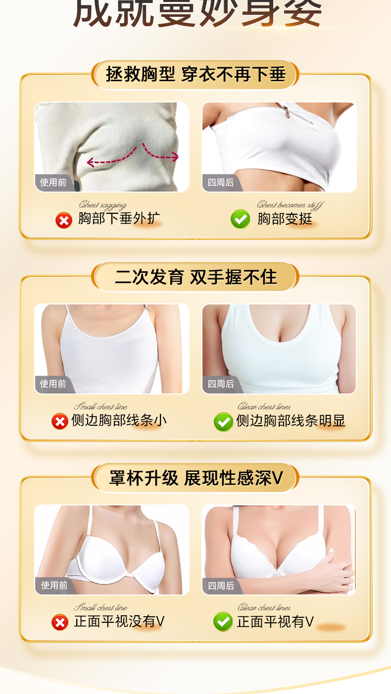 丰姿胶囊是一款天然的丰胸产品,精准出击,迅速激活下丘脑H-P-O系统,促进乳房的二次发育,迅速而彻底的解决女性乳房干瘪、萎缩、下垂。