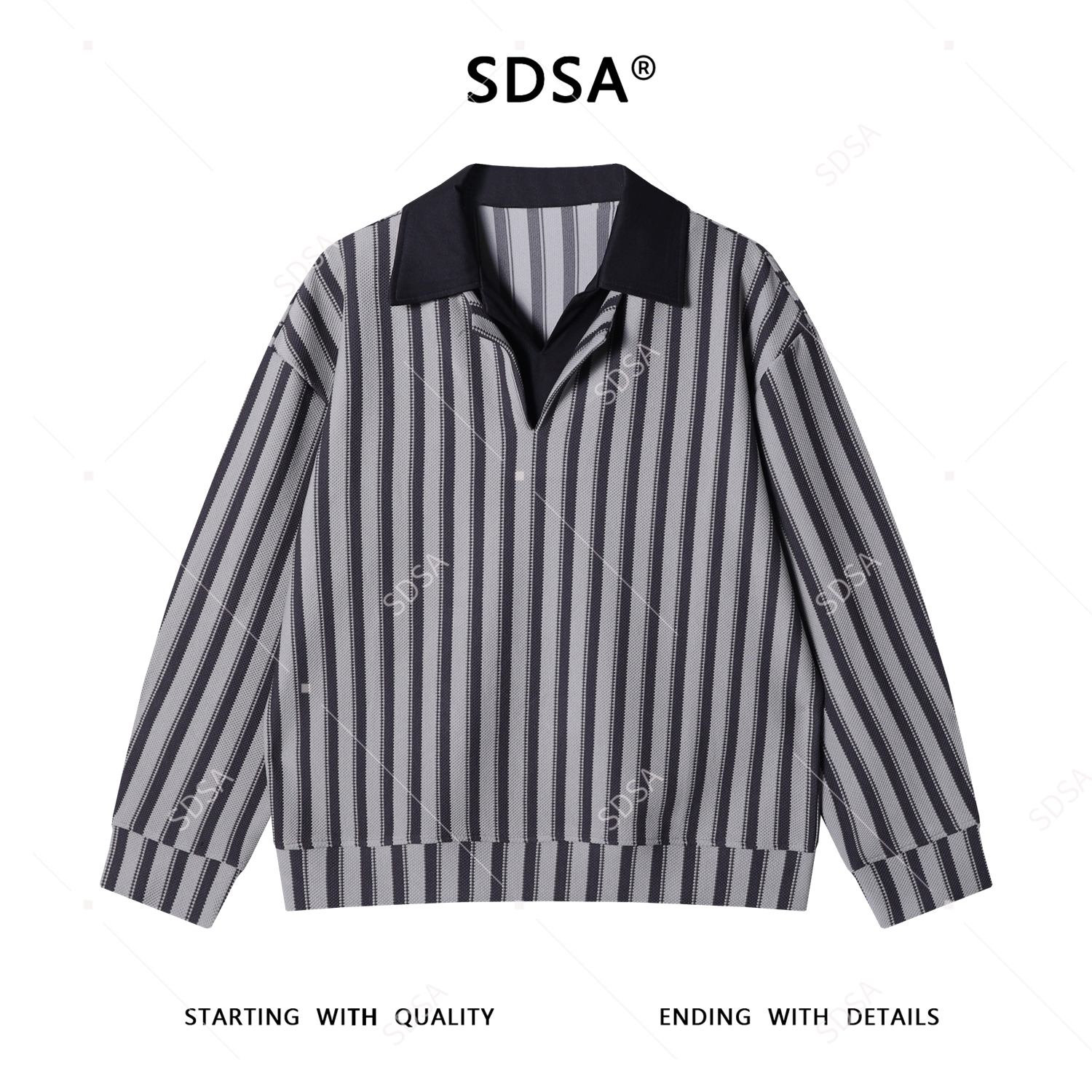 6902SDSA秋冬新款痞帅男装潮牌舒适竖纹翻领假两件衬衫老钱风百搭衬衣