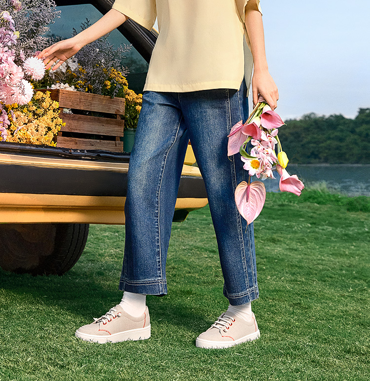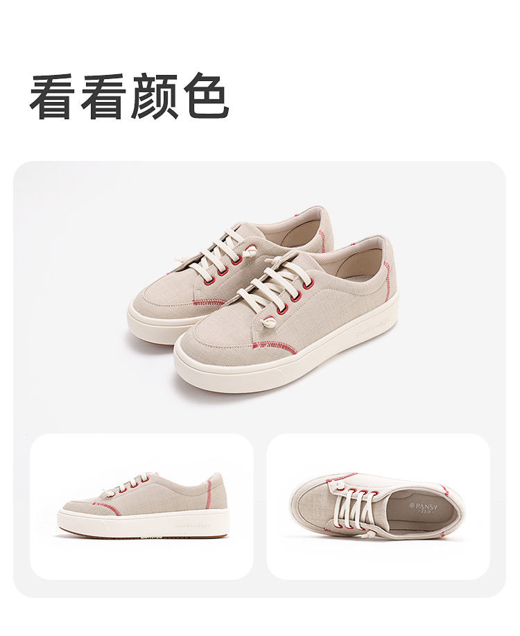 Pansy盼喜日本女鞋撞色休闲一脚蹬加宽板鞋轻便舒适厚底HD4199