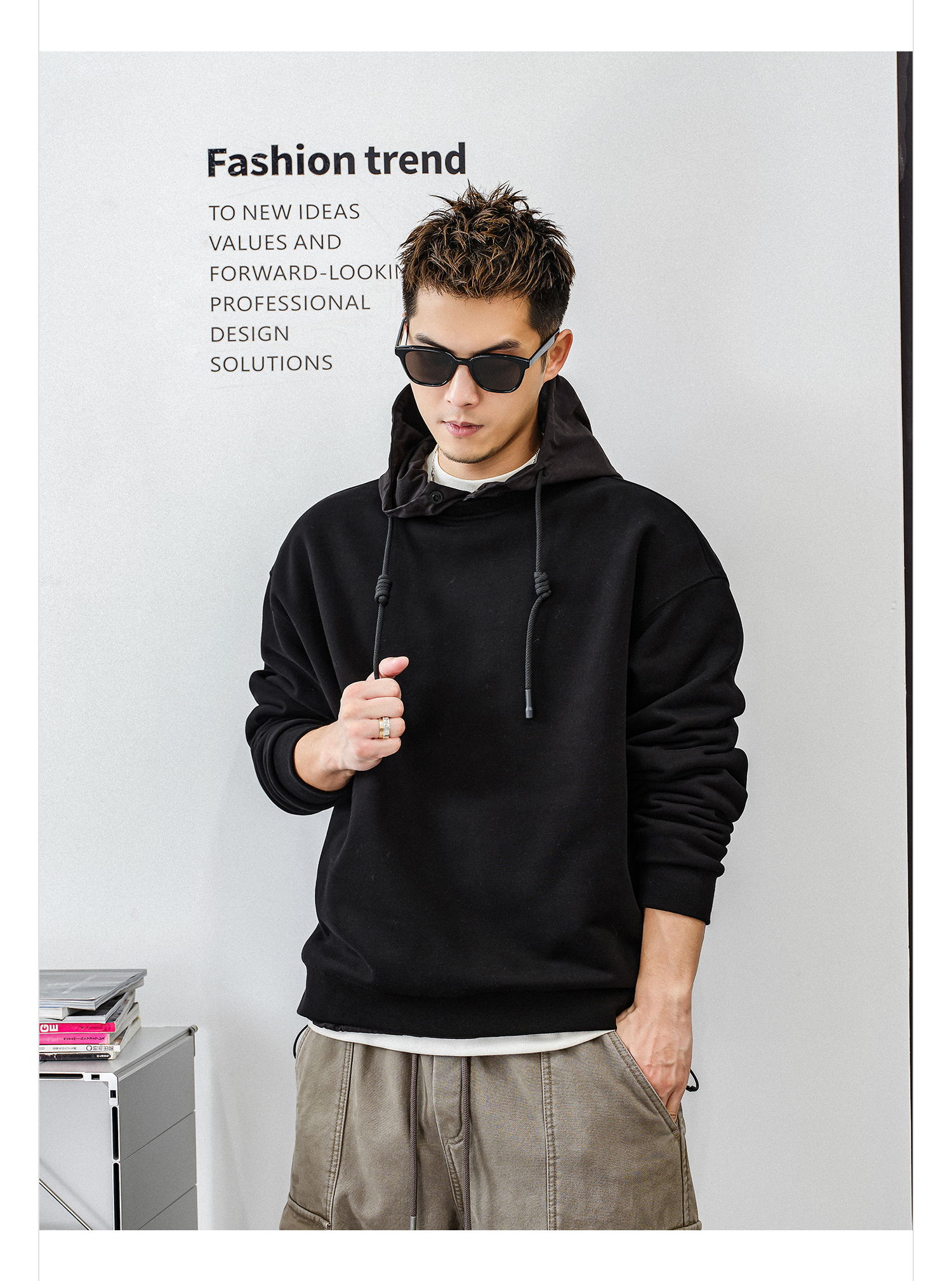 徐太浪【基础款 黑色百搭】加绒连帽卫衣男秋冬2025新款帽衫外套