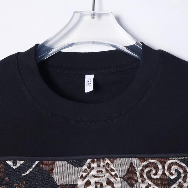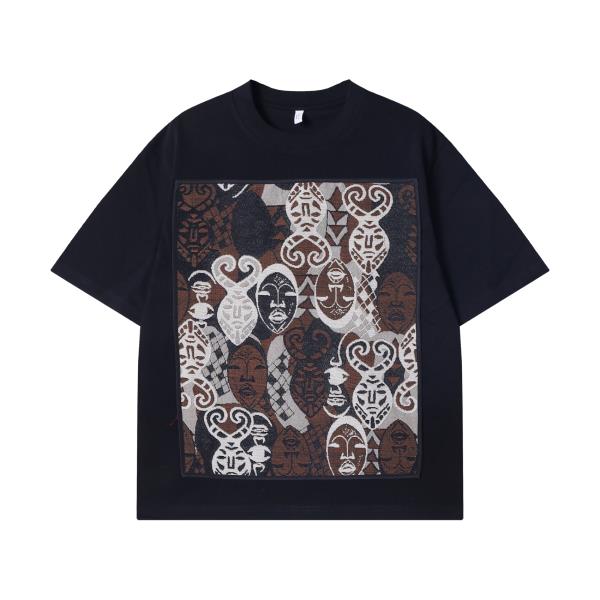 T2790夏季高级感新款国风撞色刺绣圆领短袖T恤百搭潮流宽松复古上衣