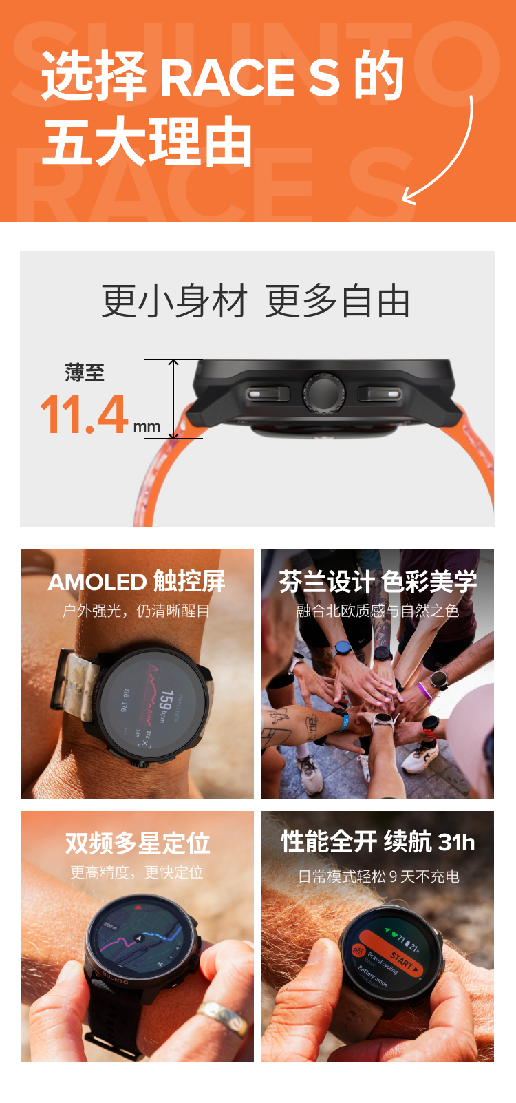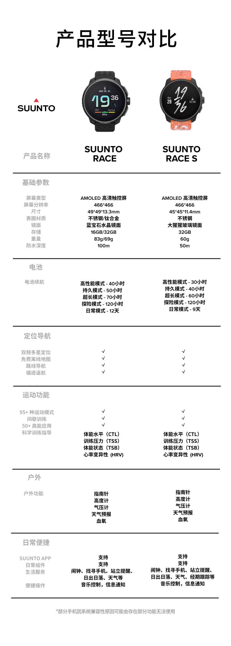 【romi专属】颂拓(SUUNTO)RACE S 轻量化户外训练手表