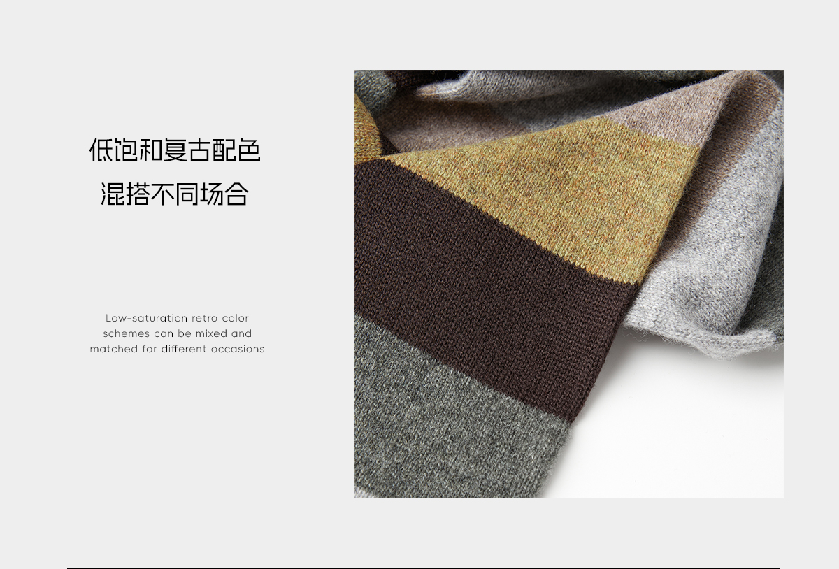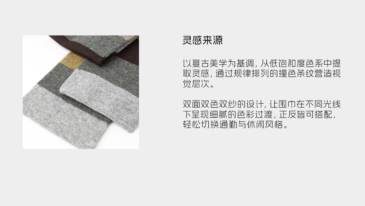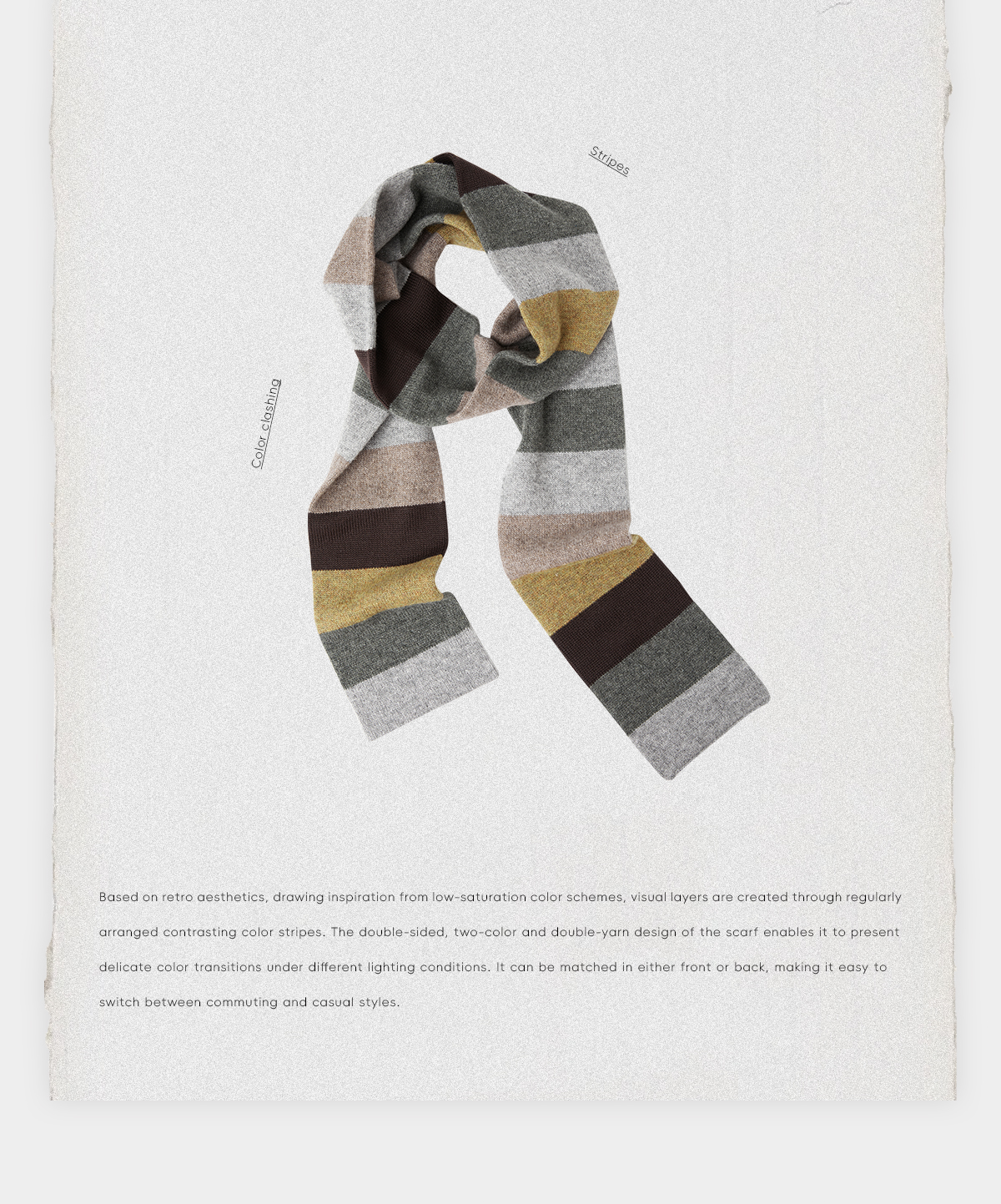 ROMI STUDIO“轻盈保暖”牦牛绒羊毛 双层撞色条纹围巾RWCWPZ6526