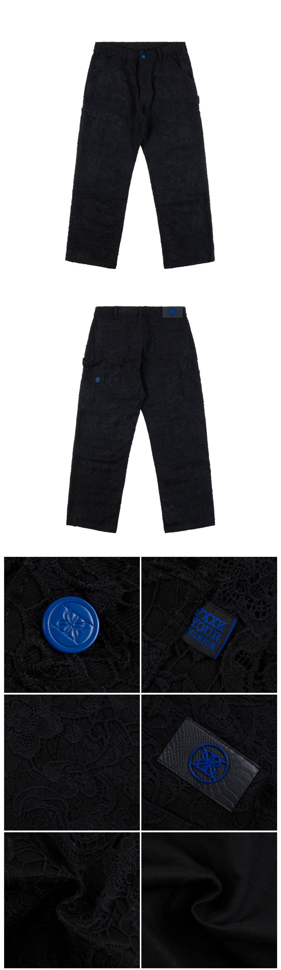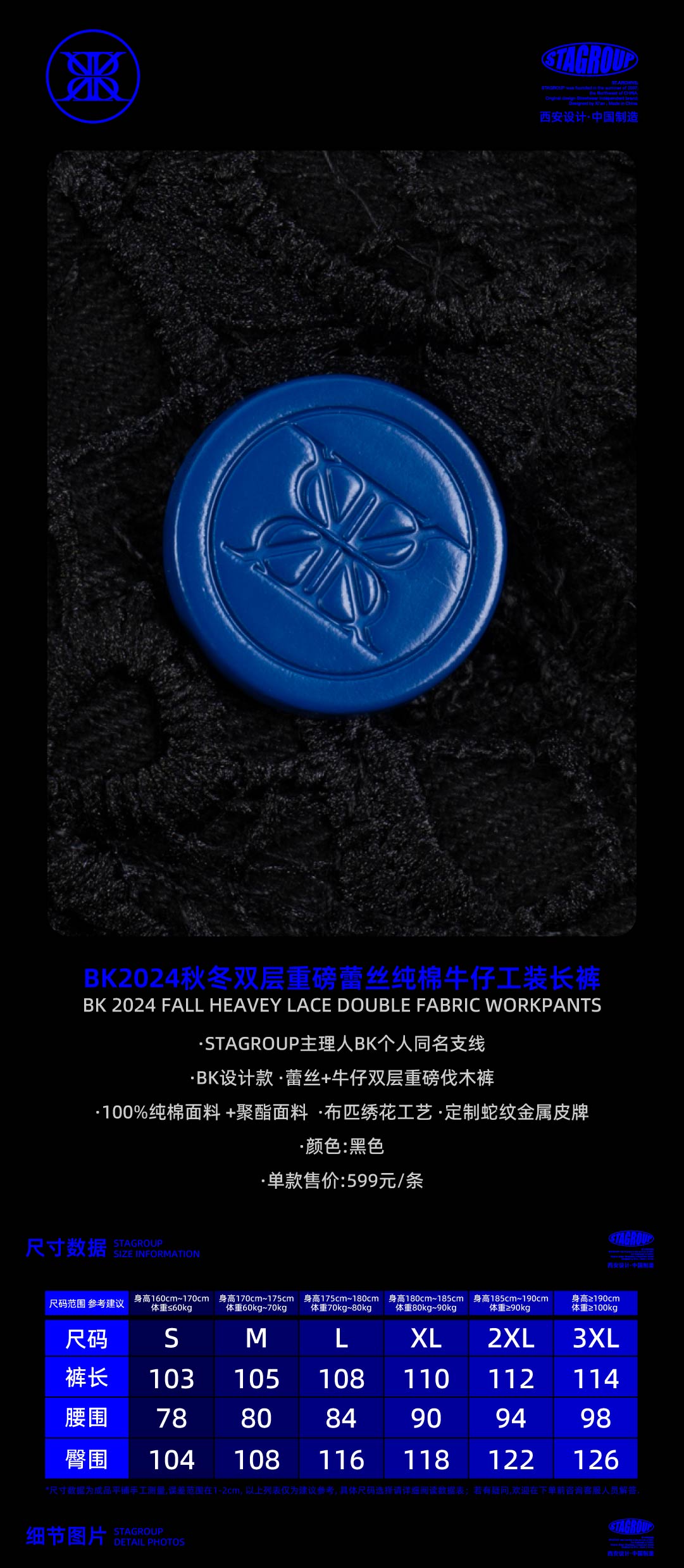 BK2024秋冬双层重磅蕾丝牛仔工装长裤