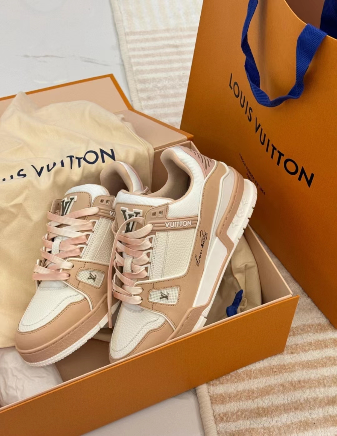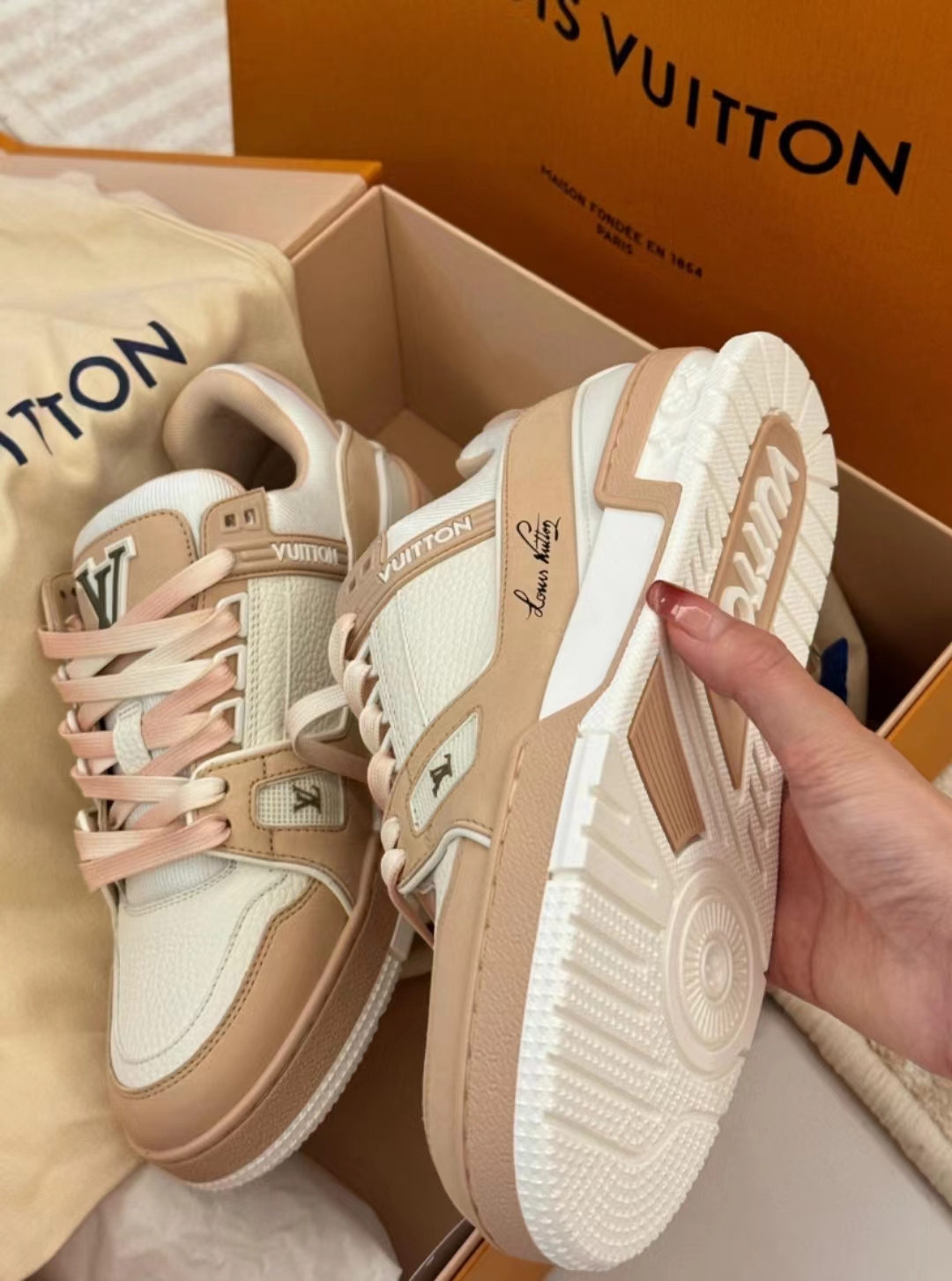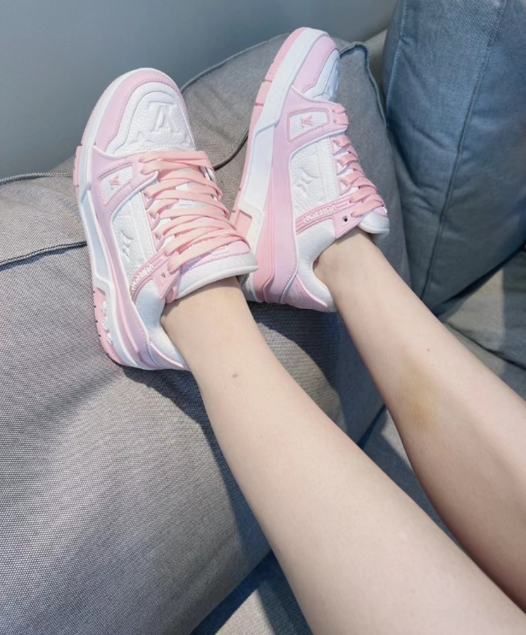 驴家 Trainer 圆头系带 低帮 板鞋 女款 粉白/玫瑰粉/灰褐色(HC)