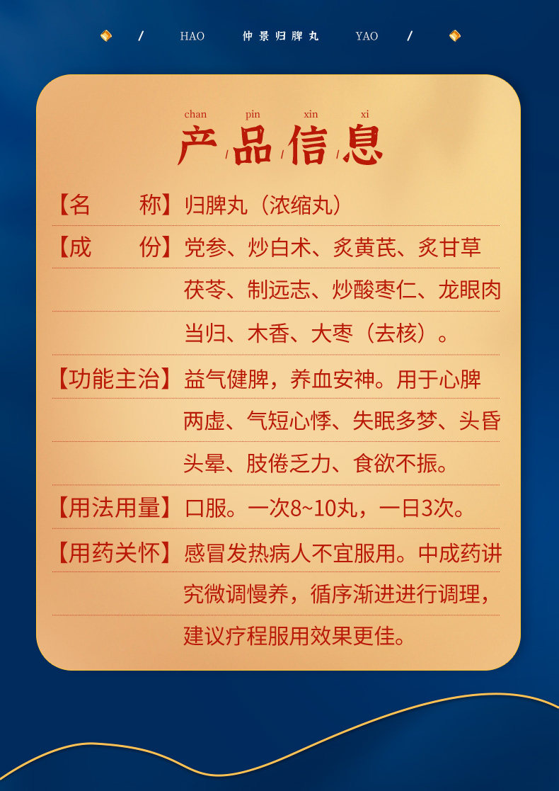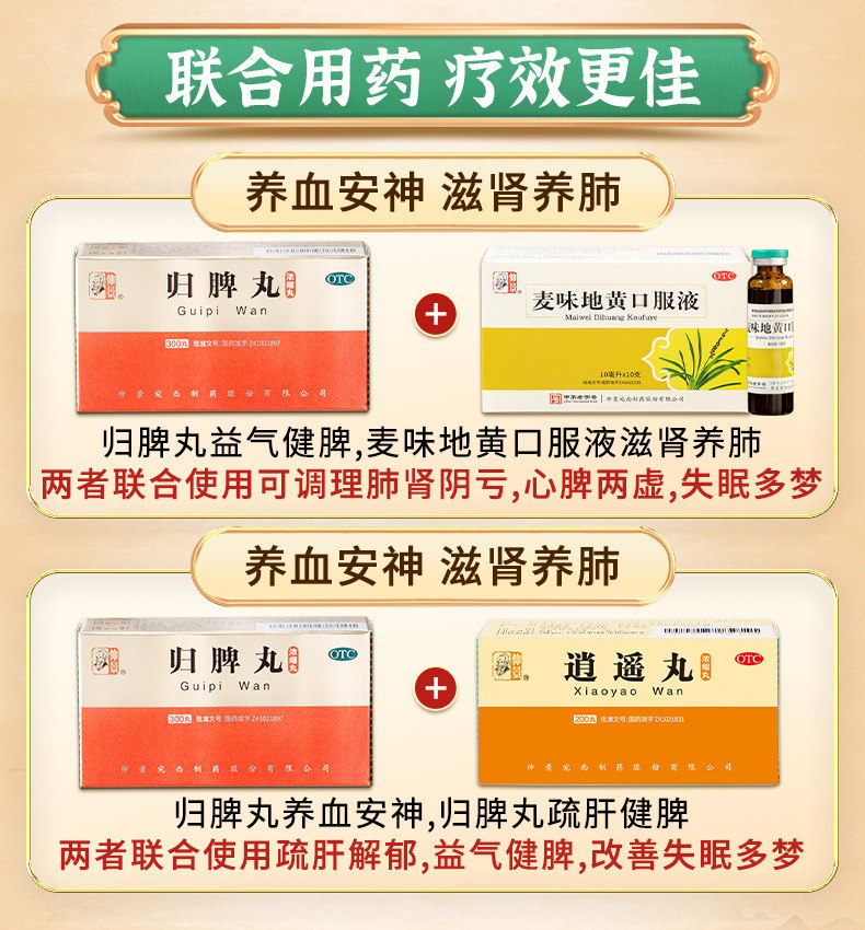 仲景归脾丸益气补血健脾养血失眠多梦心脾两虚搭逍遥丸药改善睡眠