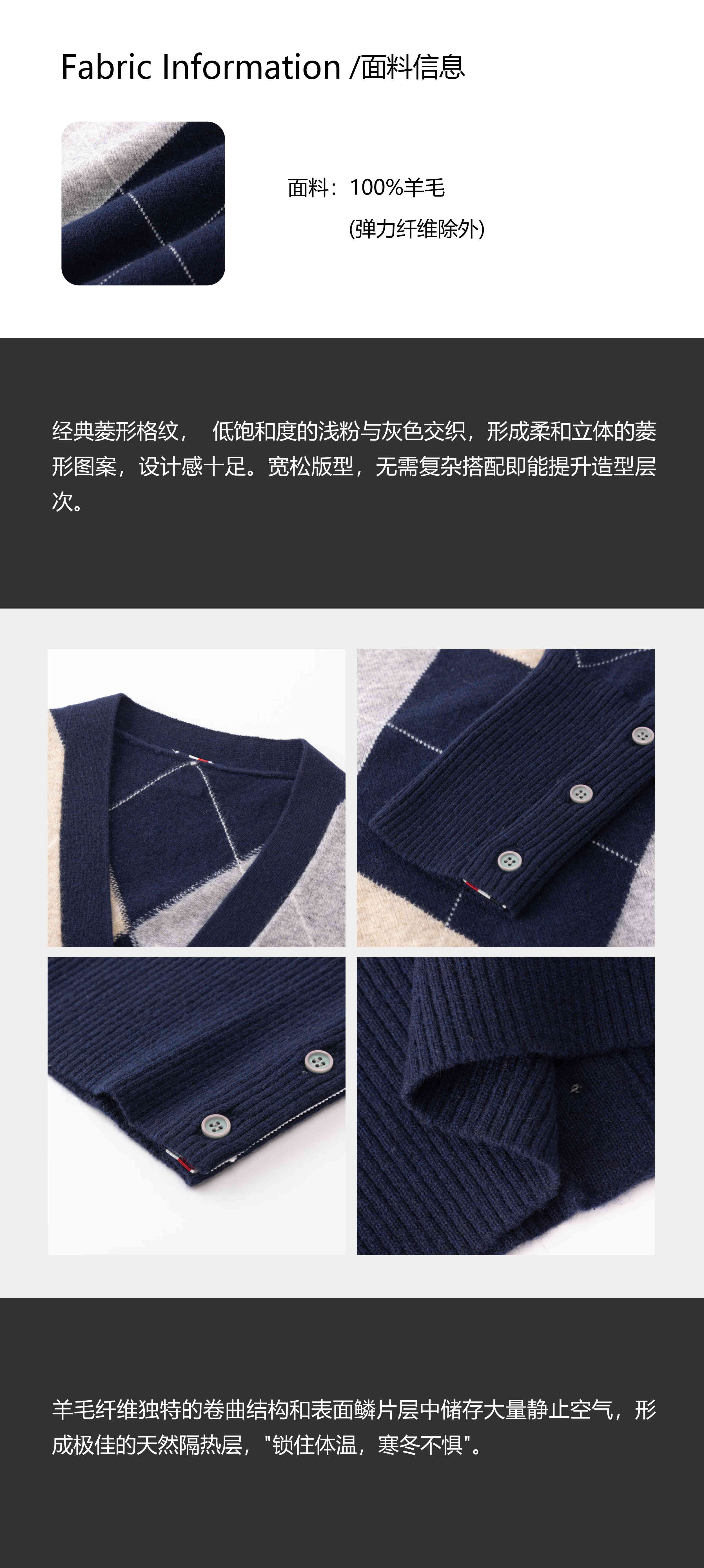 COCO ZONE 刘一一 【100羊毛】经典菱形格纹毛织上衣 CD2A1597