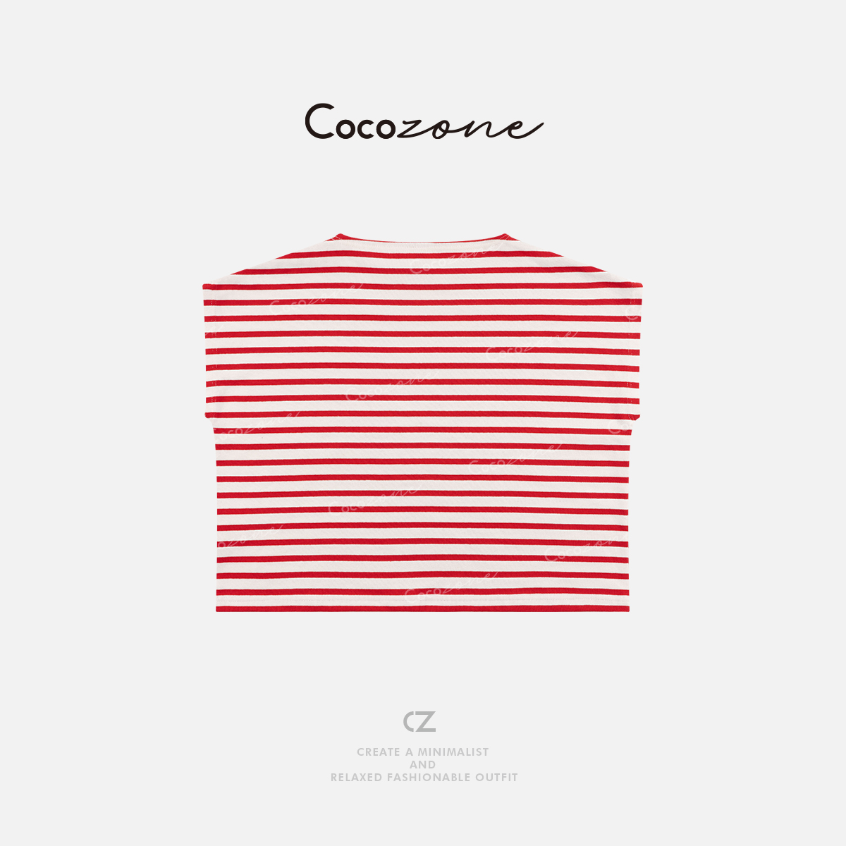COCO ZONE 刘一一 【100棉】精致简约撞色条纹短袖T恤CD1A0920