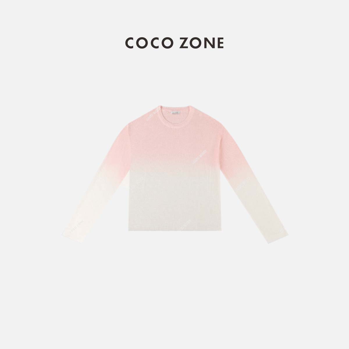 COCO ZONE 新款渐变色圆领针织运动长袖上衣23C18986