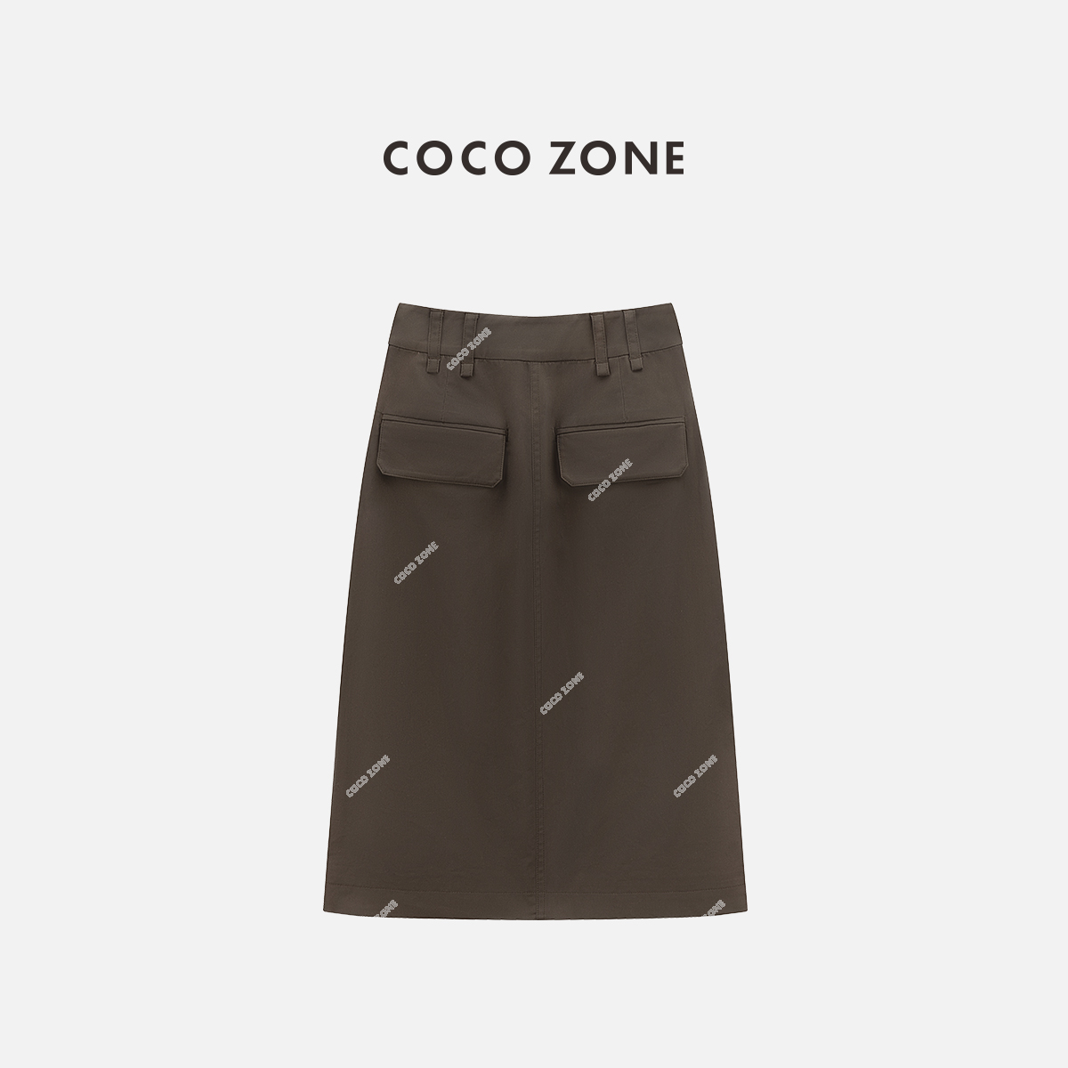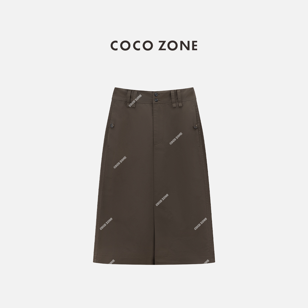 COCO ZONE 设计感百搭开叉半身裙简约时尚中长裙CC1C1720