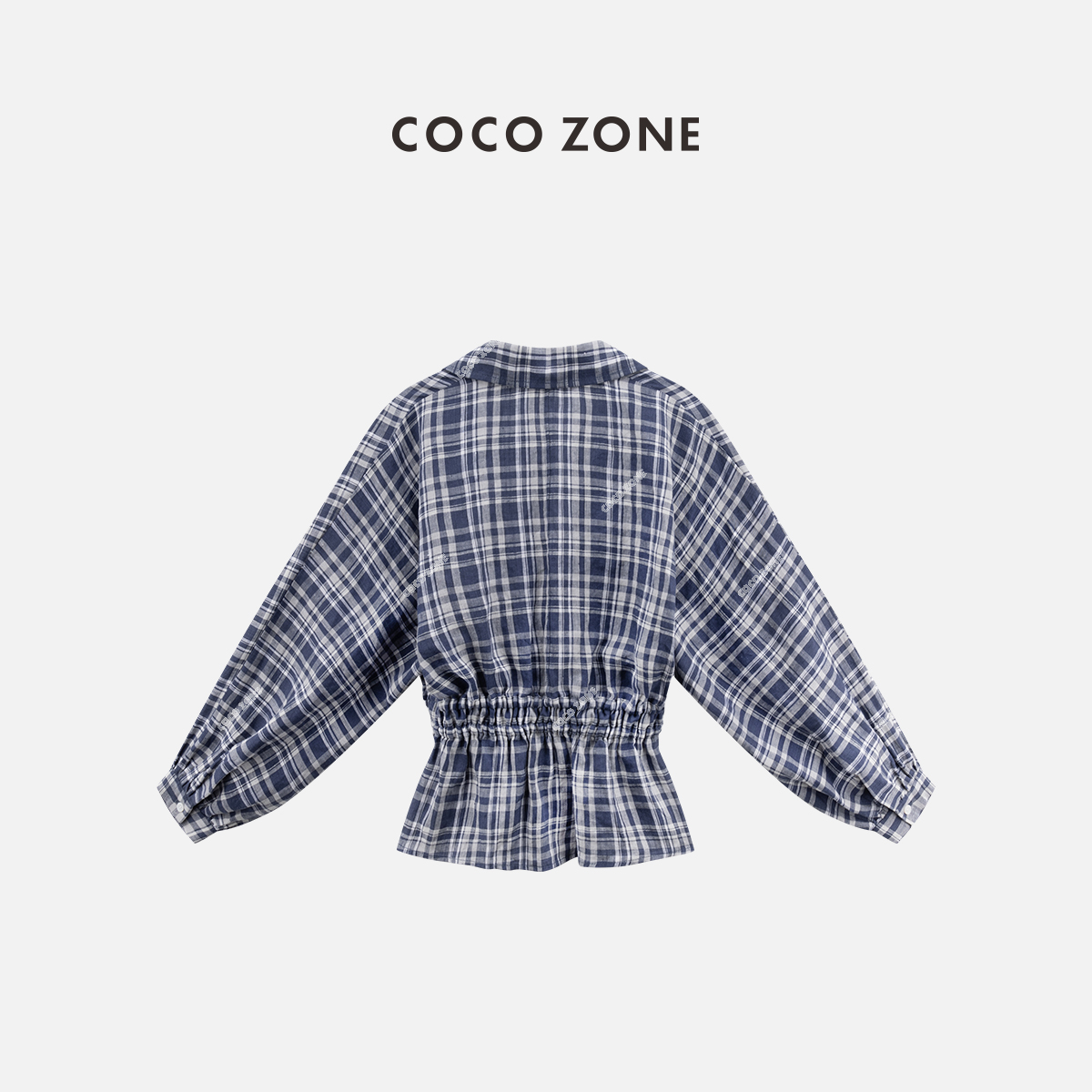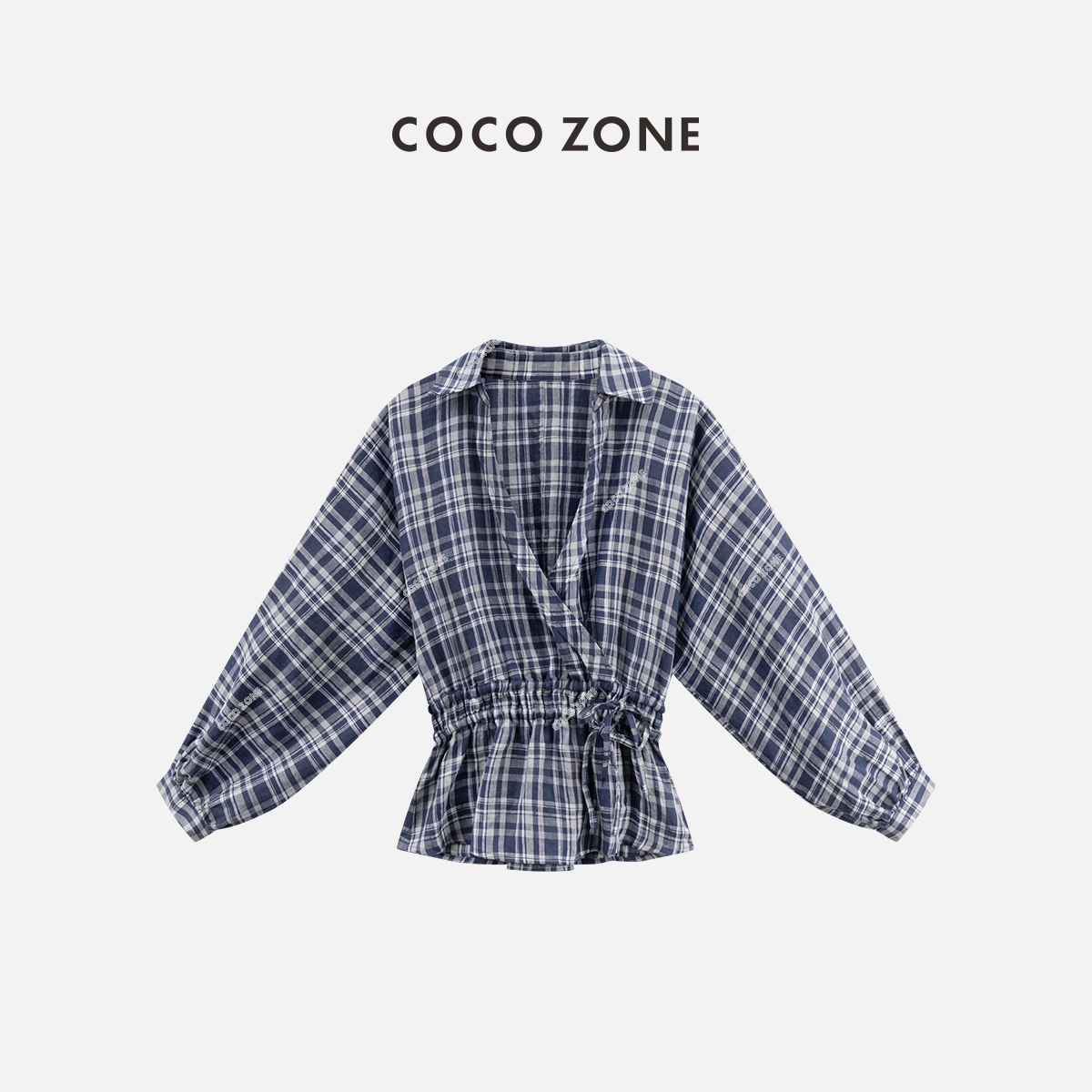 COCO ZONE 刘一一 时尚POLO领格子衬衫女收腰上衣CC2B0862