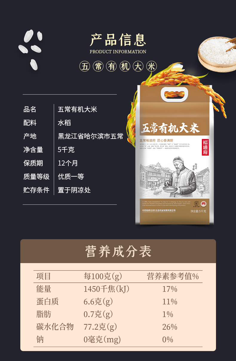 裕道府5kg五常有机大米(匠心)