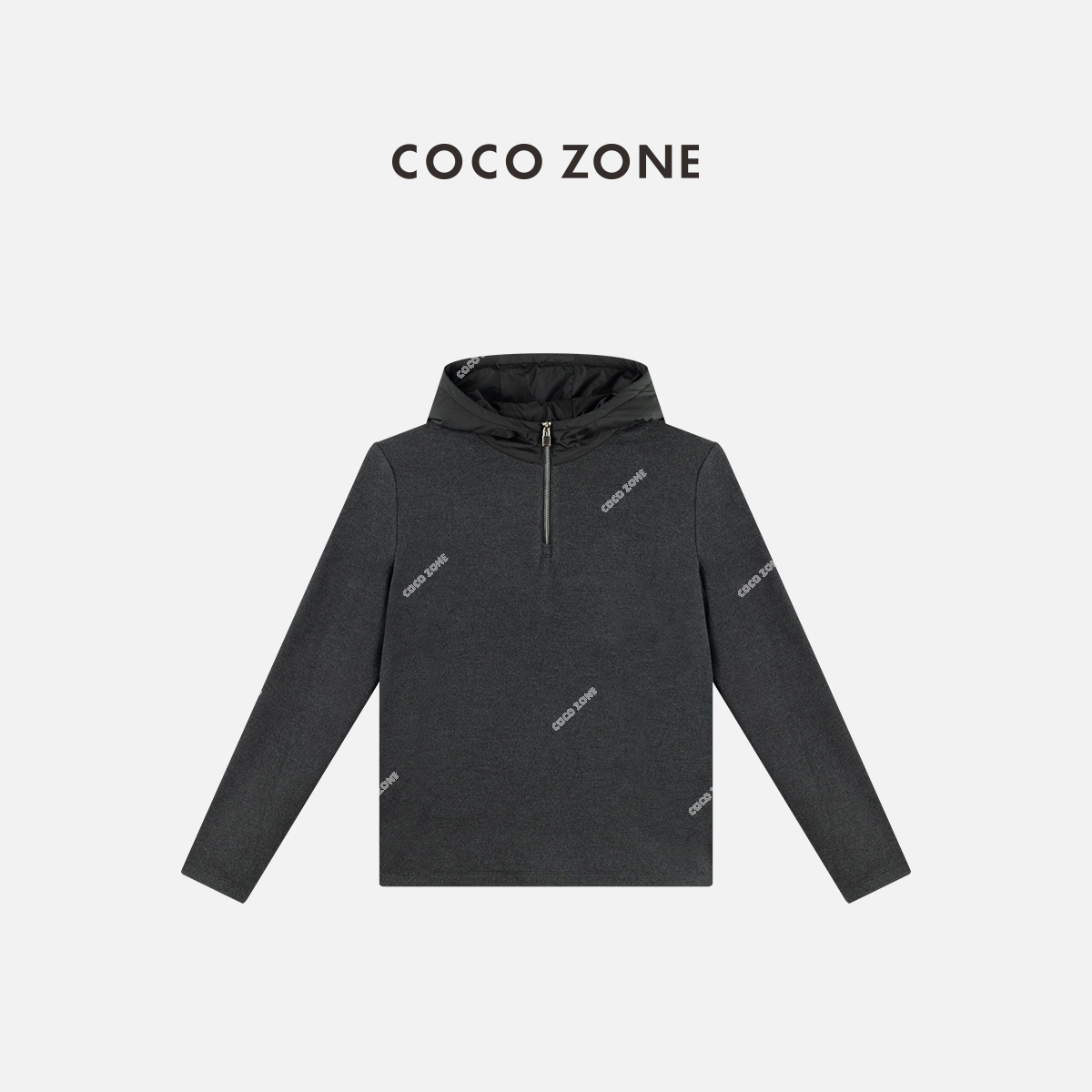 COCO ZONE 设计感简约半开领T恤气质连帽女上衣CC2C1895
