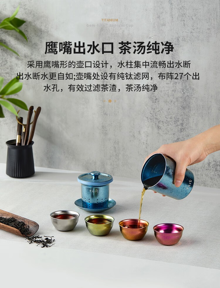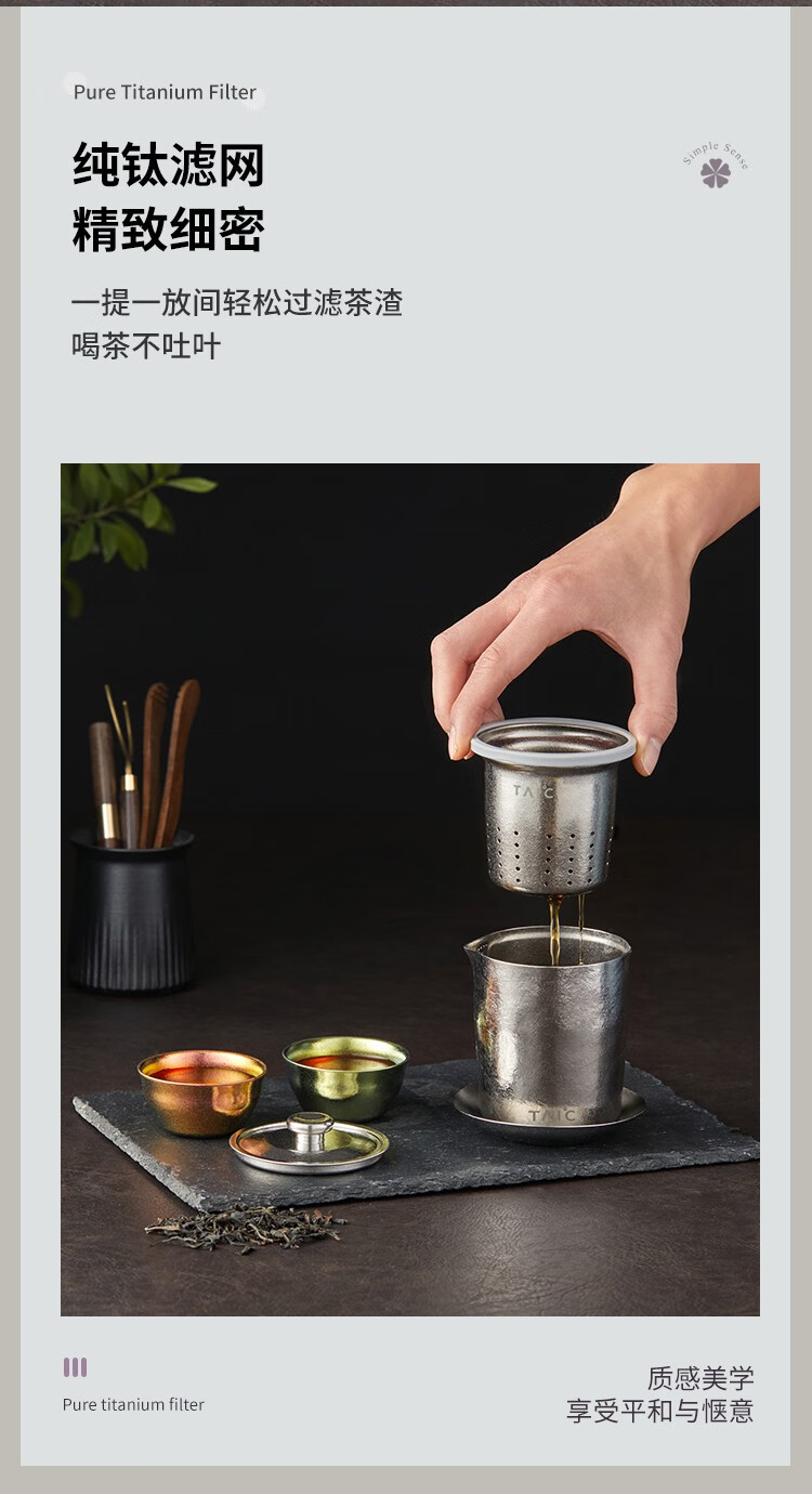 太可纯钛功夫具套装简约现代花壶过滤红泡器杯具