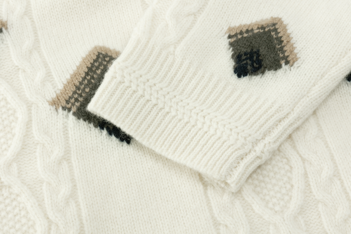 COCO ZONE 慵懒风设计感提花撞色圆领针织衫CC1D2603