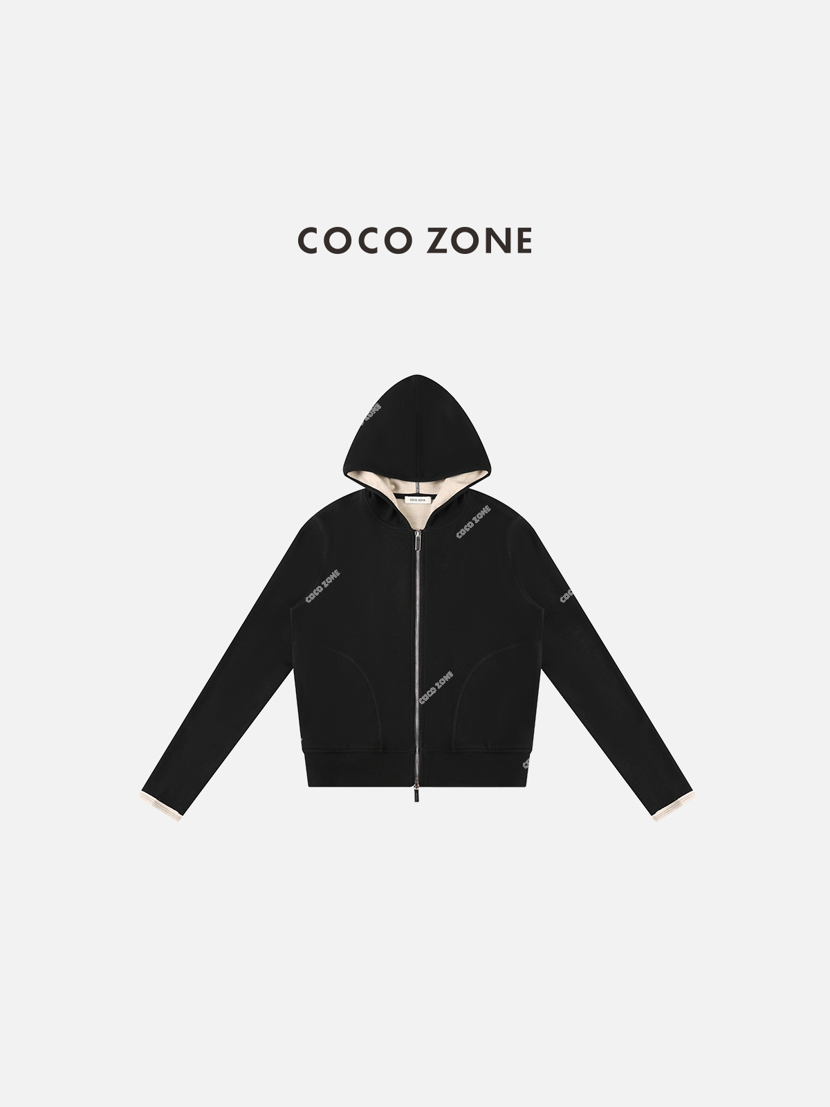 COCO ZONE秋季连帽上衣双拉链百搭通勤长袖外套 23C19320