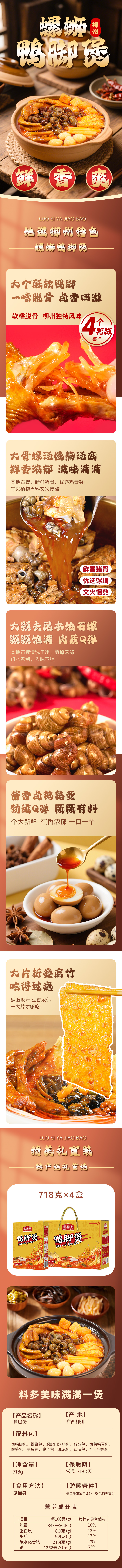 广西十大经典名菜👉螺蛳鸭脚煲👍经18道传统工艺🍲将鲜美的石螺与外酥内软的鸭脚完美结合💯配以酸笋、芋头、油果等食材在小火中慢炖出层次丰富的风味🔥嗦石螺、啃鸭脚让人欲罢不能【718g*4盒】