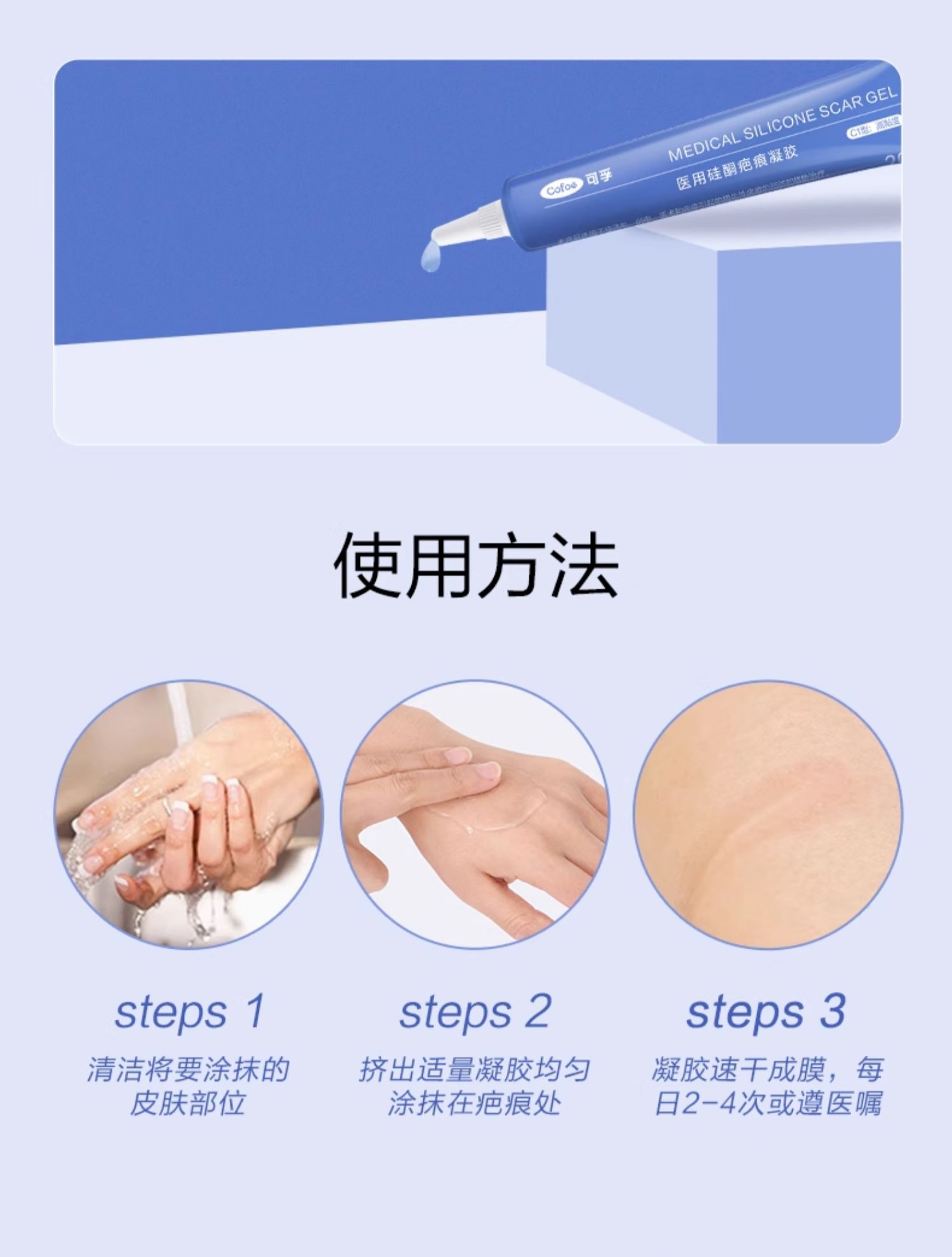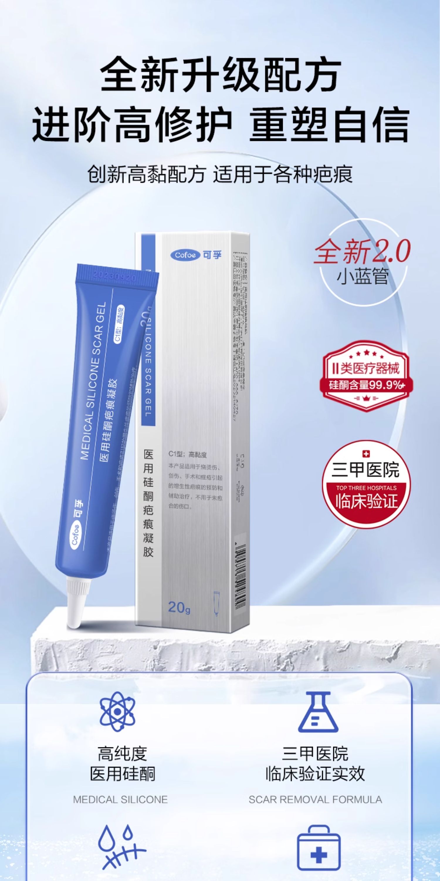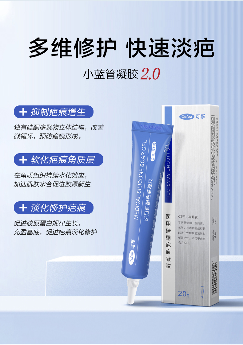 可孚医用祛疤膏硅酮凝胶去疤痕修复除疤剖腹产手术增生儿童去疤膏